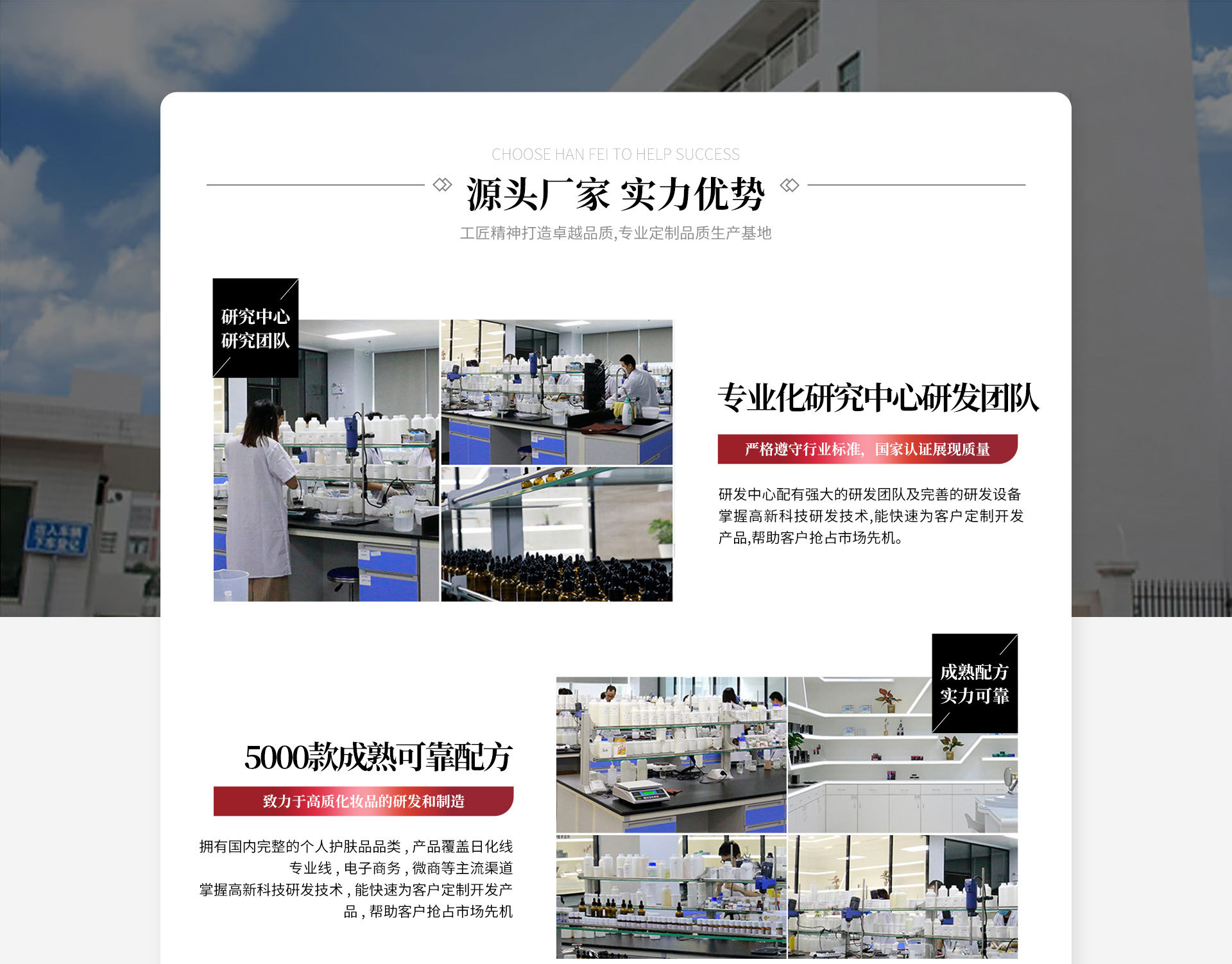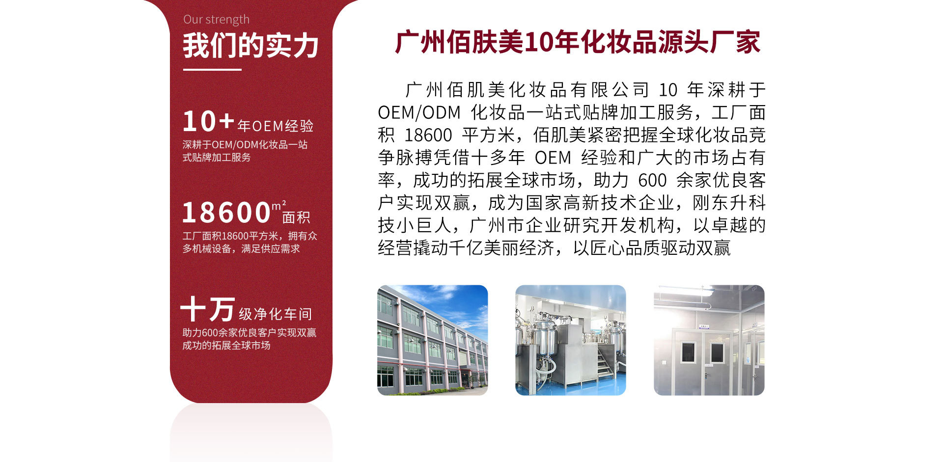 廣州佰膚美化妝品有限公司是一家集科研,生產(chǎn),OEM,ODM美容護(hù)膚品代工的生產(chǎn)廠家。 從產(chǎn)品研發(fā)到生產(chǎn),每個(gè)環(huán)節(jié)都受到專業(yè)設(shè)備與人員的嚴(yán)格控制與監(jiān)督,符合GMP質(zhì)量標(biāo)準(zhǔn)。企業(yè)所有產(chǎn)品均不添加任何激素、抗生素、重金屬等有害人體的成分,皆經(jīng)過藥監(jiān)局監(jiān)督管理局檢驗(yàn)與備案,以及功效都得到市場(chǎng)非常好的認(rèn)可