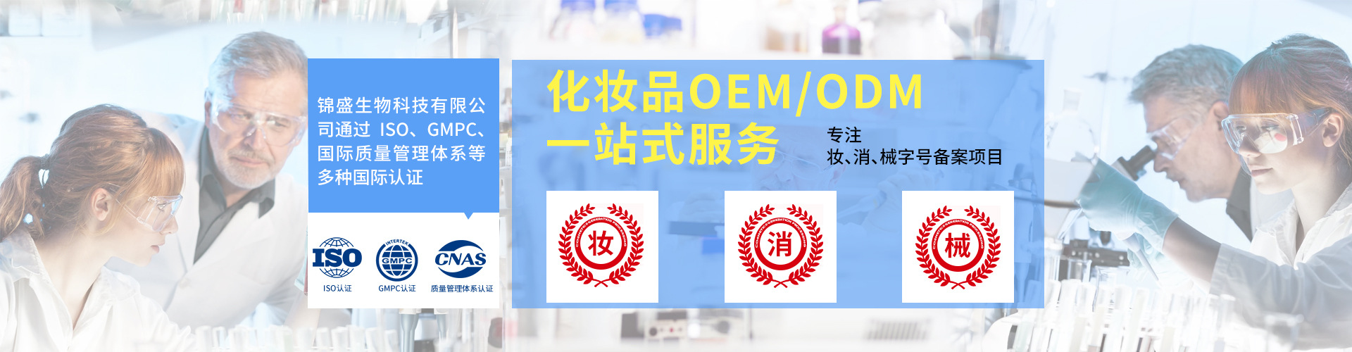 錦盛創立與1990年,是中國領先的技術型研發企業,我們致力于把 健康美容帶入每個人、每個家庭。持續為1000余家國內外日化企業 和300余加品牌商提供技術、產品、服務支撐,產品以多形態滲透數 億家庭,成為國際領軍、國內頂尖的護膚、女性護理、養生護理等 品牌孵化生產供應商。為寶潔、雅芳等企業提供產品原料。與清華 大學、復旦大學、武漢大學、北京同仁堂等達成產品研發戰略合作 ,為品牌研發更優質的產品。2017年為品牌輸出生態技術產品, 2019年成了國內第一家微生態研發中心