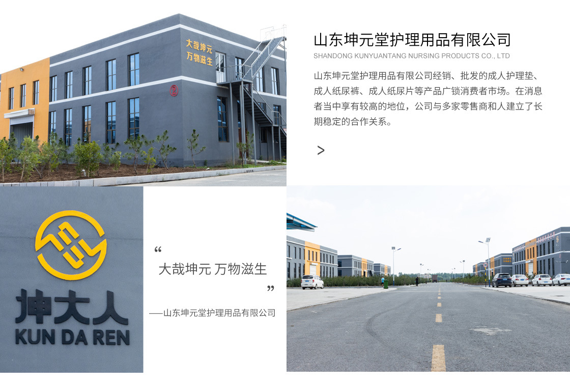 山東坤元堂護理用品有限公司是成人紙尿褲、成人拉拉褲、一次性嬰兒尿墊、健康衛生床墊、產婦護理墊等產品專業生產加工的公司,擁有完整、科學的質量管理體系。山東坤元堂護理用品有限公司的誠信、實力和產品質量獲得業界的認可。歡迎各界朋友蒞臨參觀、指導和業務洽談。