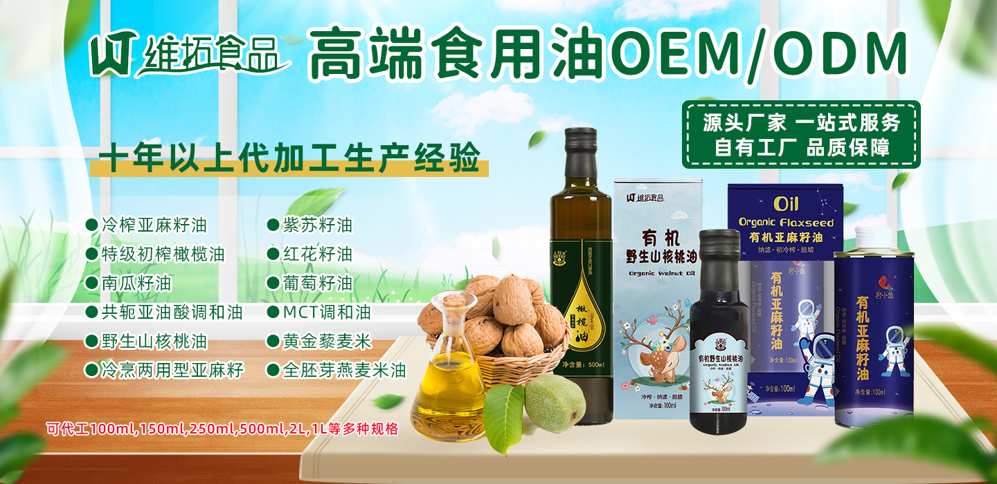 公司主營產品有亞麻籽油、核桃油、葡萄籽油、橄欖油、南瓜籽油、紅花籽油、紫蘇籽油、全胚芽燕麥米、藜麥米等全系列高端糧油產品,還可承接OEM代加工業務,100ml、150ml、250ml、500ml、1L、2L等多種規格。