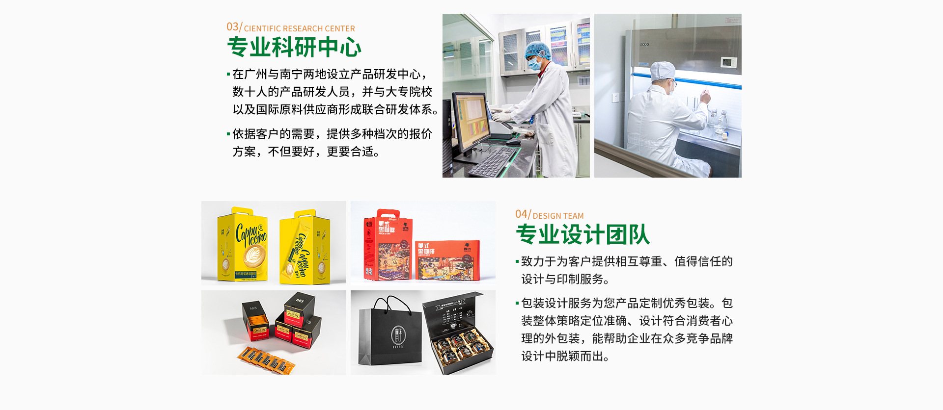廣西摩氏咖啡進(jìn)出口有限公司成立于2013年7月,是一-家集進(jìn)口、研發(fā)、生產(chǎn)、銷售為-體的咖啡生產(chǎn)科技型企業(yè)。公司擁有專業(yè)化的營(yíng)銷隊(duì)伍和強(qiáng)大的售后團(tuán)隊(duì),在長(zhǎng)期的國(guó)際貿(mào)易往來中積累了大量的客戶資源和市場(chǎng)營(yíng)銷經(jīng)驗(yàn),現(xiàn)已成為國(guó)內(nèi)領(lǐng)先的“沖調(diào)飲品OEM/ODM-站式服務(wù)商”. 形成完整的供應(yīng)鏈解決方案組,可滿足客戶不同的業(yè)務(wù)需求。 廣西摩氏咖啡進(jìn)出口有限公司業(yè)務(wù)范圍涵蓋了自主品牌加工、半成品批發(fā)供應(yīng)、貼牌代工等三大核心板塊業(yè)務(wù)板塊。公司現(xiàn)有兩條咖啡固體飲料生產(chǎn)線和十萬級(jí)GMP生產(chǎn)車間,生產(chǎn)自動(dòng)化程度高,研發(fā)能力強(qiáng)。旗下產(chǎn)品包括接受度最高的三合一多口味咖啡、國(guó)民度很高的凍干黑咖啡系列、對(duì)品質(zhì)要求更高的輕奢精品咖啡系列、更還原更便攜的冷萃咖啡液,從咖啡原產(chǎn)地從咖啡莊園采購(gòu)生豆,對(duì)咖啡豆的炒焙等各個(gè)環(huán)節(jié)要求嚴(yán)苛。自主研發(fā)的摩氏牌卡布奇諾、拿鐵咖啡、美式黑咖啡和免煮精品系列瓶裝黑咖啡產(chǎn)品深受消費(fèi)者喜愛