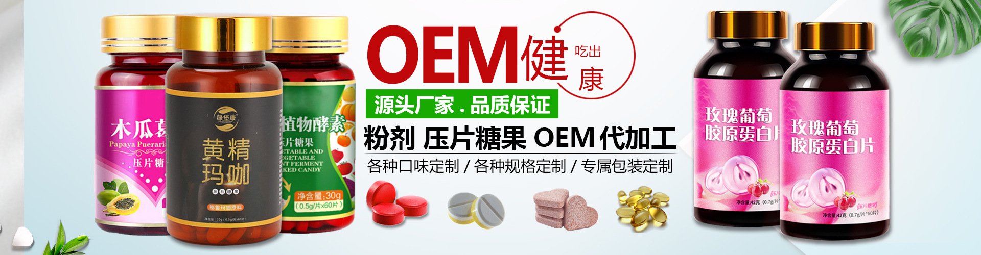 廣州綠康醫藥科技有限公司是一家集生產、研發、銷售、服務以及大健康文化傳播于一體的專業OEM/ODM綜合性企業,公司提供固體飲料,壓片糖果,口服液,果凍,軟糖,袋泡茶等的生產是專業加工領航者,為微商、電商、新零售爆款定制,配方研發、品牌賦能、產品策劃等一站式服務,打造屬于您自己的品牌!