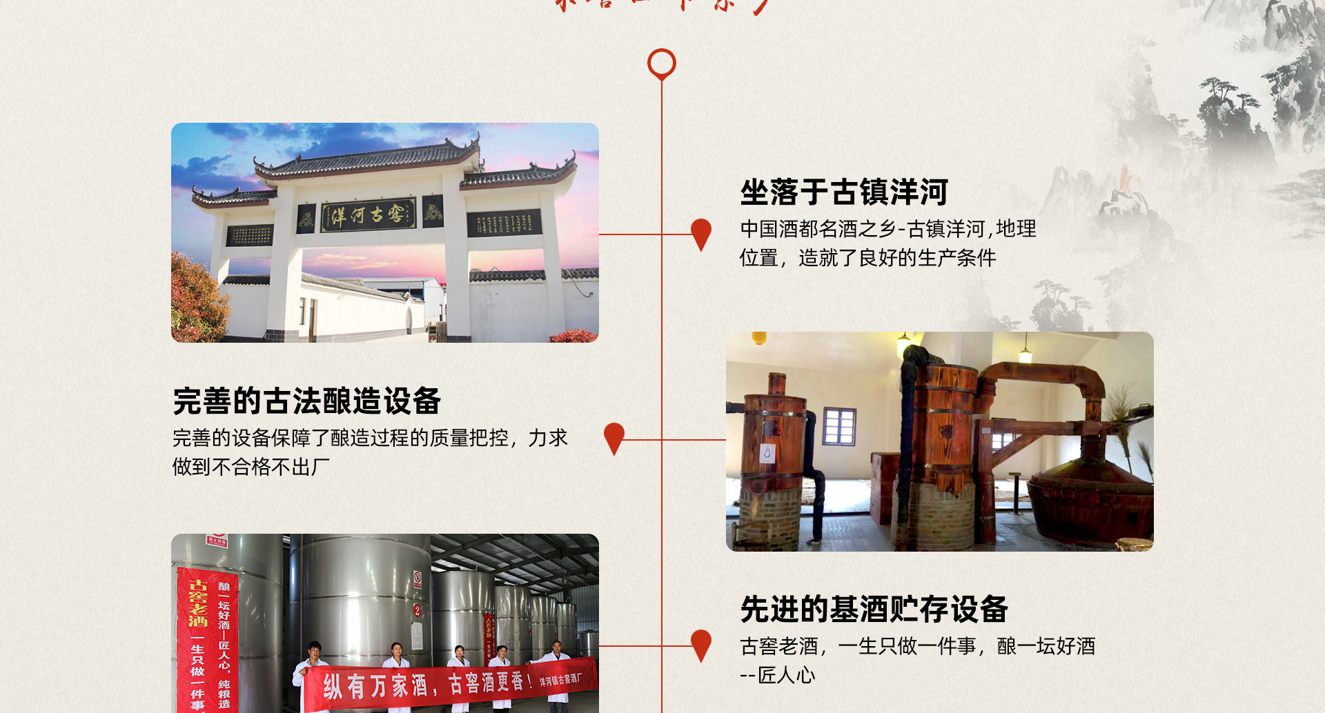 宿遷市洋河鎮古窖酒廠成立于2004年,前身為洋河美酒廠。坐落在被譽為中國酒都的名酒之鄉古鎮洋河。產酒依靠產地的自然條件,符合監管部門鑒定的,含有多種人體所需的礦物質質優礦泉水釀造。柔合具有四百多年歷史的傳統釀造技術而釀造,所以酒質呈現出具有甜、綿、爽、凈、香等特點,在本質上本廠追循返璞歸真的品質。讓消費者真正喝到原汁原味的品質佳酒。宿遷市洋河鎮古窖酒廠占地約31000平方米,固定資產約1200萬,職工160余人。全廠致力于質量為本,顧客至上為宗旨 ,從原料生產到包裝成品,11道關口層層把關。在質量上嚴格要求,力求做到不合格不出廠,讓消費者買得放心,喝的舒心。