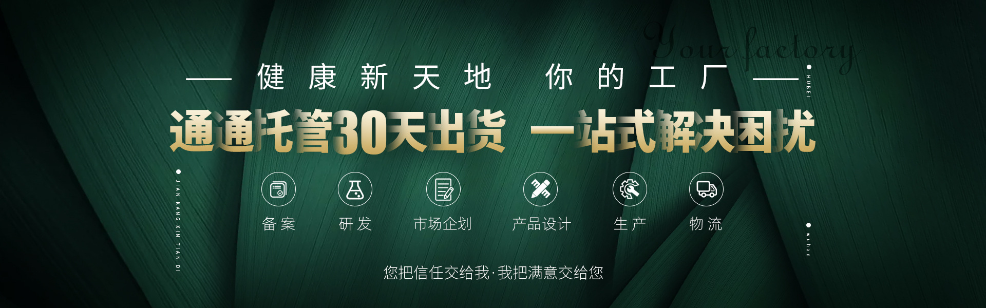 武漢健康新天地科技有限公司是一家集醫療器械、保健品、食品研發、生產于一體的高科技企業,專業從事醫療器械、保健食品的研發、生產、銷售,擁有現代化的研發中心、產品中心,現有 SC 食品 98 個,藍帽保健食品 6個,國家級專利及相關獎項 37 例。 健康新天地從事保健品、食品研發、生產、銷售20余年,在OEM、ODM領域積累了身后的經驗,擁有GMP認證和QS認證的6000平方米10萬級標準廠房,擁有從德國引進的具國際一流水平的科研儀器、生產設備、全自動包裝流水線和質量控制檢驗儀器。嚴格按照國家GMP標準,SC生產許可證生產,生產規模累計產量達200億。 公司承接袋泡茶、膠囊、貼劑、固體飲料、壓片糖果等健康產品OEM/ODM代加工業務,價格公道,保證質量。從生產到交貨全程一對一專人跟進,20年來公司的OEM代加工已經日益成為了行業標準定制企業。