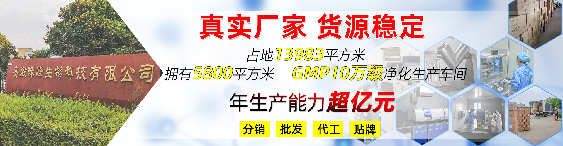 安徽珠峰生物科技有限公司成立于2004年,位于中原經濟區規劃建設的東部門戶城市有著“華東藥都”之稱的阜陽市太和縣。是一家專業從事保健品、功能性食品研發、生產、銷售一體的高科技公司,員工在職人數120多人,其中研發技術人員15人,公司注重人才培養,派專業人員赴國內外深造,具備強大的研發能力。公司占地13983平方米,投資2000多萬元。擁有粉劑、片劑、膠囊、顆粒劑等數條生產線;產能巨大.年產值近2個億。公司擁有GMP10萬級凈化車間。并在我縣首家通過國家保健食品良好生產規范(GMP)驗收。憑借資深營養專家和數十年從事保健食品經營的先決條件,公司生產的補鈣、補充維生素及礦物質、天然維生素E等產品暢銷全國,深受近千家代理商和眾多消費者信賴。 公司成立近年來,業務量不斷擴大。從早期的湖南、山東、河南幾個省份逐步發展到現在的28個省、自治區、直轄市。基本實現全國覆蓋,銷售額突破至兩個億