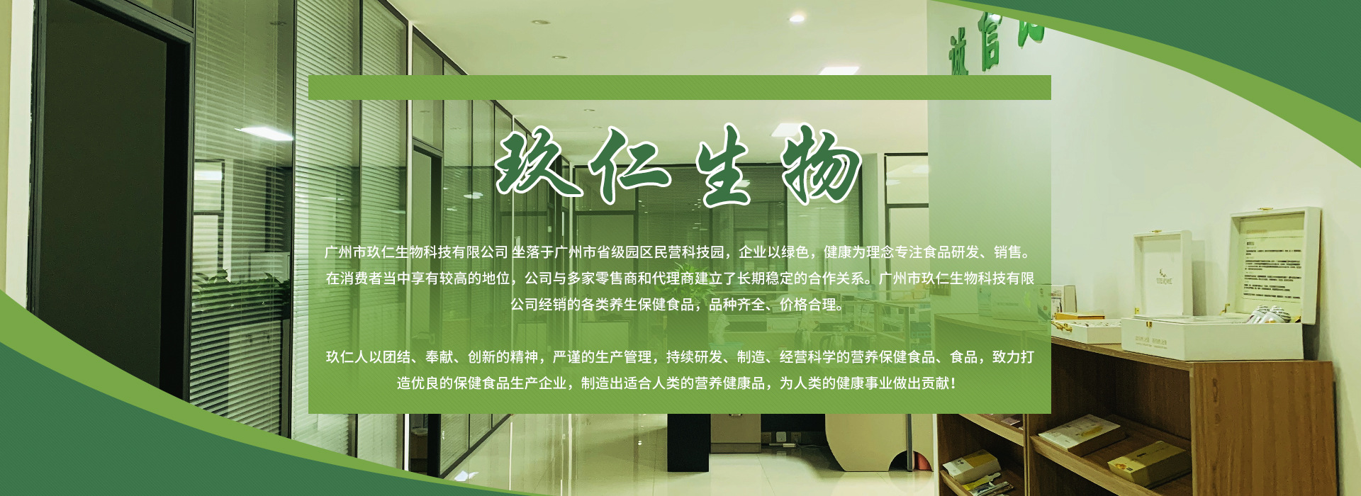 廣州市玖仁生物科技有限公司坐落于廣東省級(jí)園區(qū)民營科技園,企業(yè)以綠色、健康為理念專注食品研發(fā)、生產(chǎn)、銷售。在消費(fèi)者中享有較高的地位,公司與多家品牌商和代理商建立了長期穩(wěn)定的合作關(guān)系。廣州市玖仁生物科技有限公司經(jīng)銷的各類養(yǎng)生保健食品,品種齊全,價(jià)格合理。 玖仁人以團(tuán)結(jié)、奉獻(xiàn)、創(chuàng)新的精神,嚴(yán)謹(jǐn)?shù)纳a(chǎn)管理,持續(xù)研發(fā)、制造、經(jīng)營科學(xué)的營養(yǎng)保健食品、食品,致力打造優(yōu)良的保健食品生產(chǎn)企業(yè),制造合適人類的營養(yǎng)健康品,為人類的健康事業(yè)做出貢獻(xiàn)!