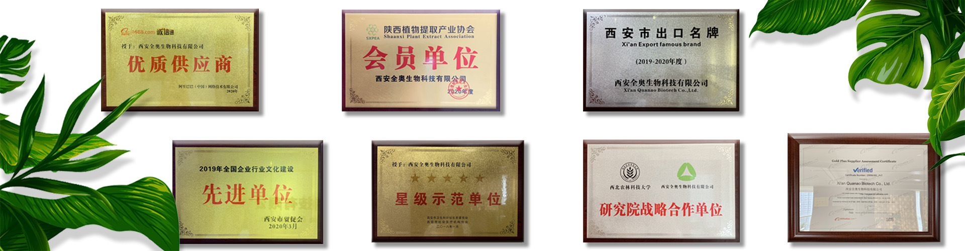 西安全奧生物科技有限公司是一家專業從事天然動植物有效單體和有效成分開發研究、提純加工、工藝轉讓、技術合作的高新技術企業。產品主要用于制藥、保健品、化妝品、飲料及食品等行業。對動植物的純天然提取,保證健康無添加,迎合了時代需求,為越來越多的公司創造巨大的社會效益和財富。 公司始終堅持與高校的科研成果的轉化,目前與西安交通大學,西北農林科技大學,西北大學,第四軍醫大學等高等院校建立長期合作聯合開發、資源共享的戰略合作模式,目前已經開發四個大類,五百余個產品,遠銷美國,歐洲,澳大利亞,日本,及東南亞等三十多個國家和地區,深受國內外客戶認可。 我們堅持:“一切從客戶出發,為客戶解決實際問題”的樸素理念,不斷學習,不斷進步,實現合作共贏,共同開拓商業藍海!