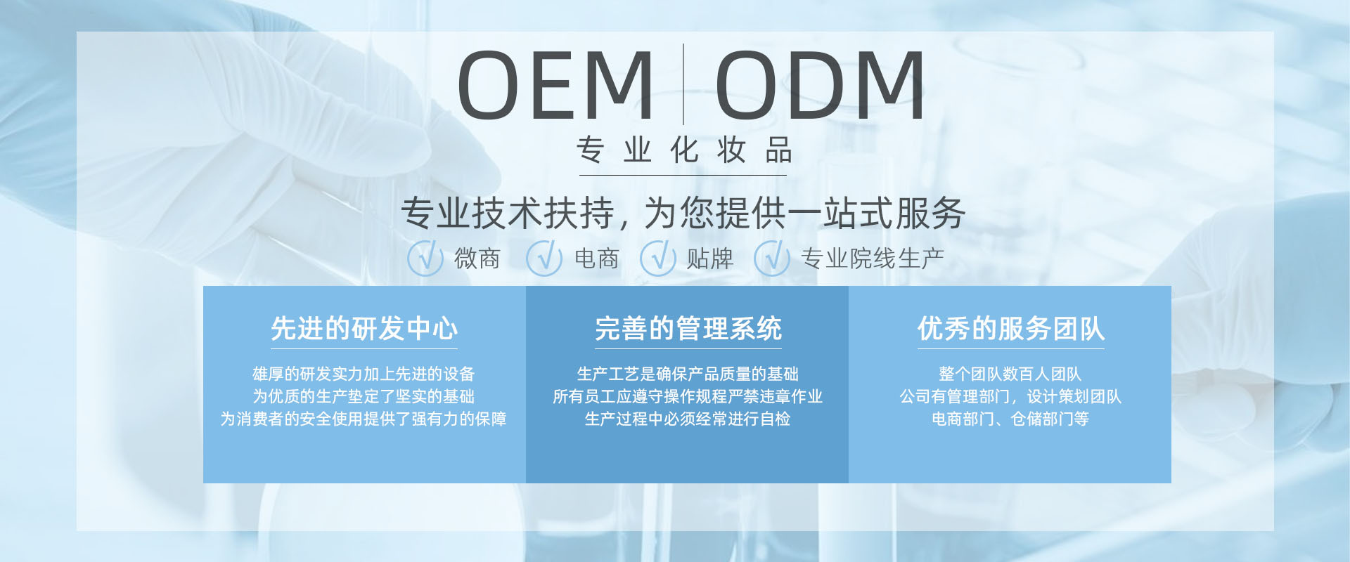 廣州冉冉生物科技有限公司是一家集產品研發、生產、銷售、OEM、ODM為一體的生產公司。公司一直致力于打造個性、時尚的美妝產品,成為一家服務有品位、愛美人士的大眾美妝生產企業。我們始終相信,好產品方能成就好口碑。作為國內為數不多的,擁有權產業鏈的美妝化妝品公司之一,從研發設計到投產上市,廣州冉冉生物科技以嚴格的要求,不斷打造多樣化的時尚化妝品、不忘初心,創造“美妝產品一站式打包擁有”的良好體驗。