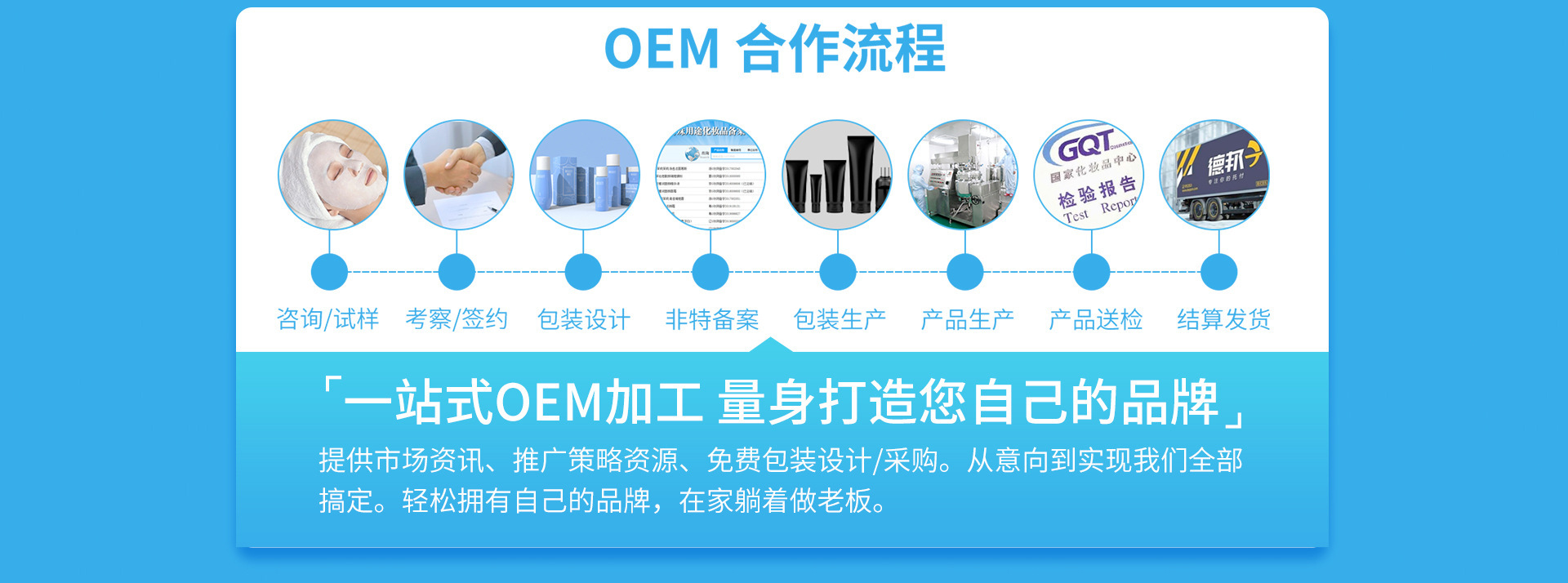 廣州乾妝國際生物科技有限公司是化妝品oem、膏類化妝品oem、霜類化妝品oem、乳類化妝品oem、爽膚水類oem、防曬類化妝品oem、卸妝類化妝品oem、精油化妝品oem、精華類化妝品oem、原液類化妝品oem、面膜類化妝品oem、眼部護理類化妝品oem、身體護理套盒oem、胸部護理套盒oem、瘦身套盒oem、祛斑套盒oem、祛痘套盒oem、養生類化妝品oem、彩妝oem、母嬰產品oem等產品專業生產加工的公司,擁有完整、科學的質量管理體系。廣州乾妝國際生物科技有限公司的誠信、實力和產品質量獲得業界的認可。歡迎各界朋友蒞臨參觀、指導和業務洽談。