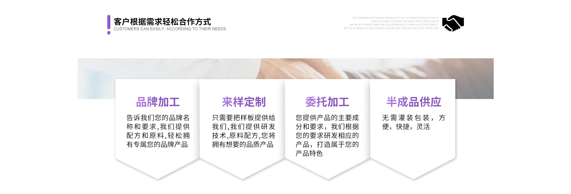 是中國目前規模較大、品類最齊、技術研發實力最強的大型化妝品專業OEM/ODM生產企業之一,現有員工600多人,廠房面積共計5萬多平方米,39條GMP標準生產線。