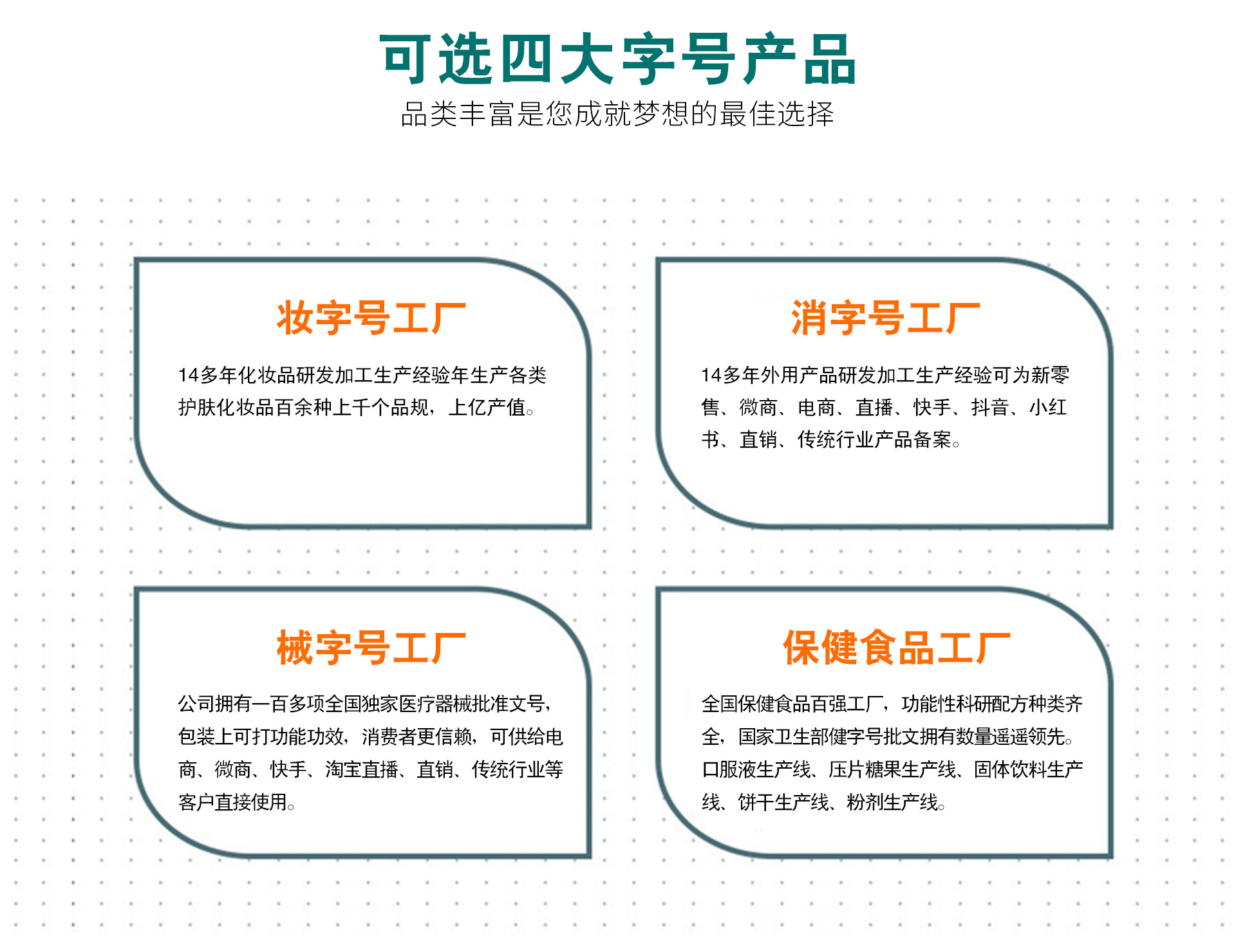 廣州佰益藥業有限公司:十年專注女性私密系列,減肥養生系列,護膚系列,工廠占地面積三萬平方,專業生產加工的公司,是一家專業從事中高檔化妝品研究、生產、加工貼牌的生產廠家,擁有妝字號、消字號、械字號,粉單元等國際化標準的10萬級生產車間,同時獲得SGS公司的GMPC和ISO雙認證,全自動化流水生產線18條,500平方的國際先進的實驗室及20多人的工程師研發團隊,先進而精密的實驗設備器材,檢測重金屬的原子吸收儀,定性,定量檢測的紫外分光光度計,液相色譜儀,測揮發物質的氣相色譜儀,測膏體細膩度的微晶檢測儀和高倍顯微鏡。對于配方設計、檢測、打樣、微生物檢測等多項能力更是具有行業先進水平。 佰益藥業 秉承“創新、匠心、誠信、服務、激情”的價值理念,從商標注冊、產品策劃、包裝設計與采購、倉儲管理等層層把關,為客戶的品牌保駕護航;產品覆蓋日化線、專業線、電商、微商、直銷、直播、社團等主流渠道。