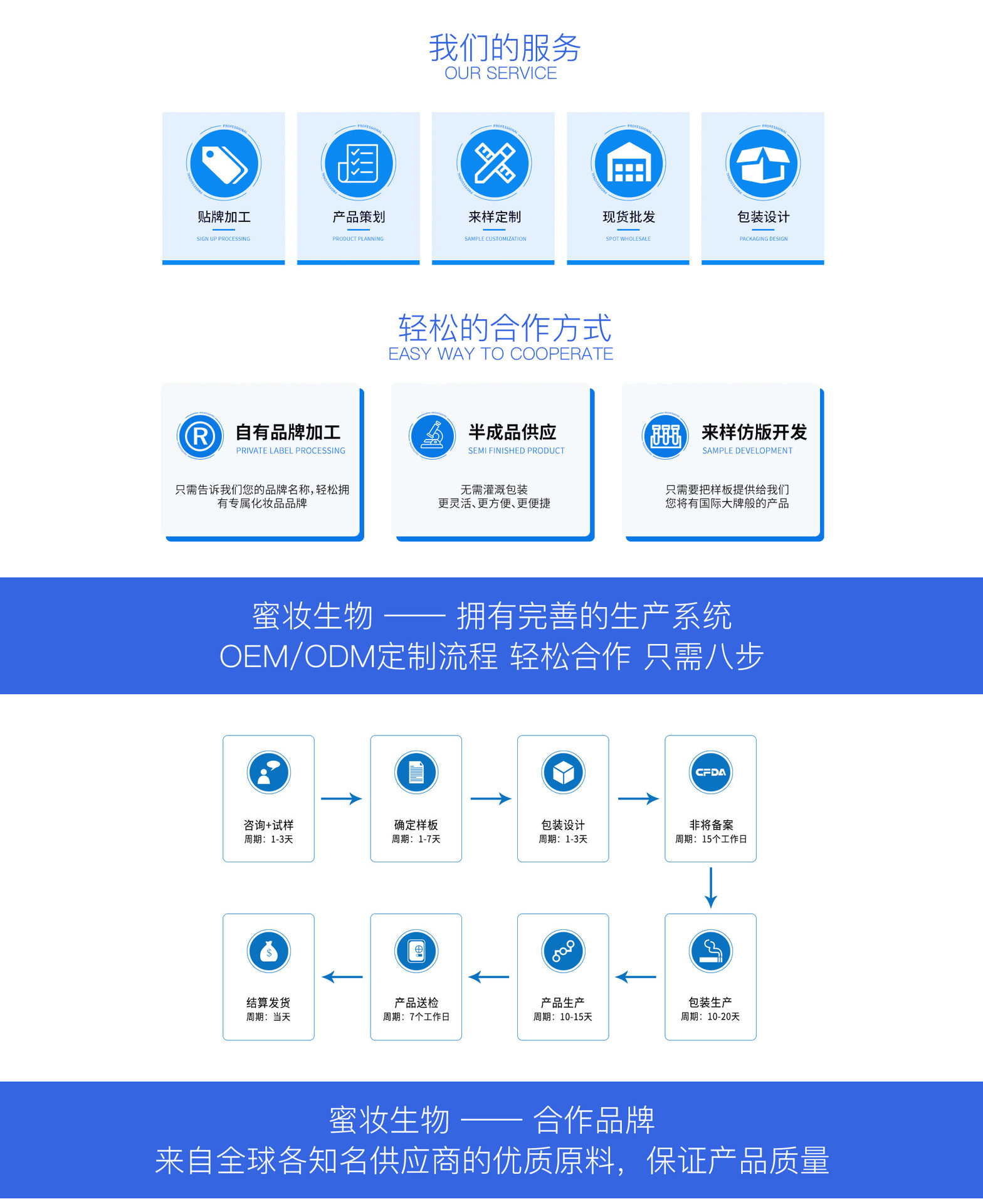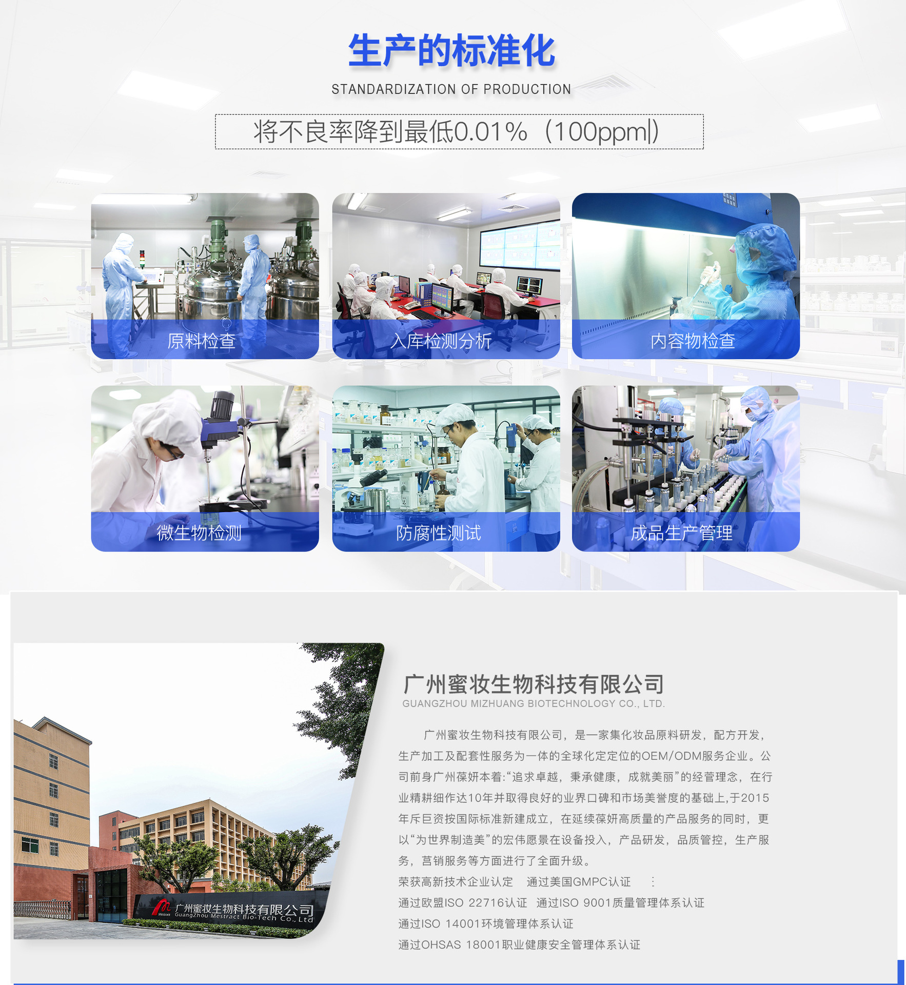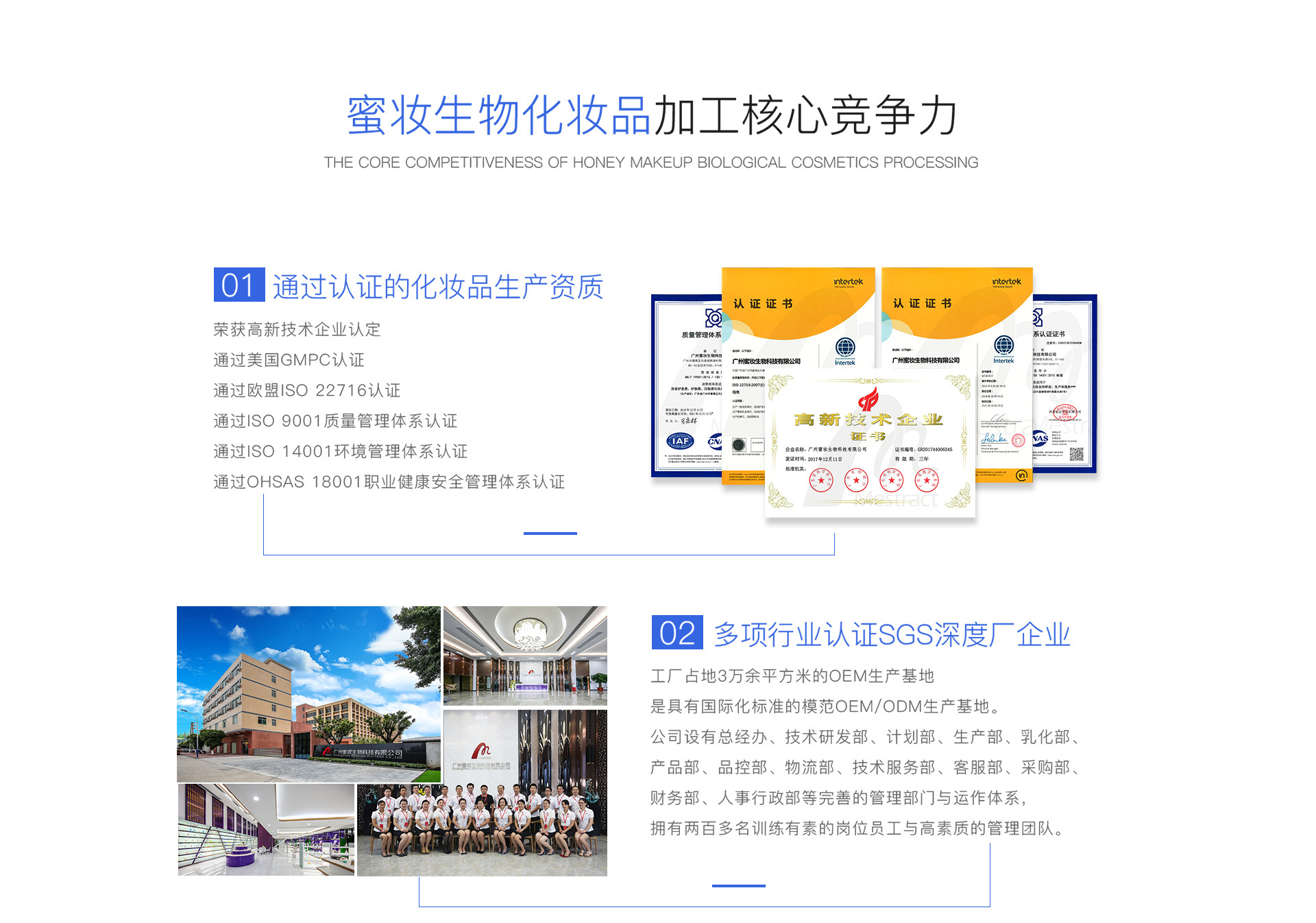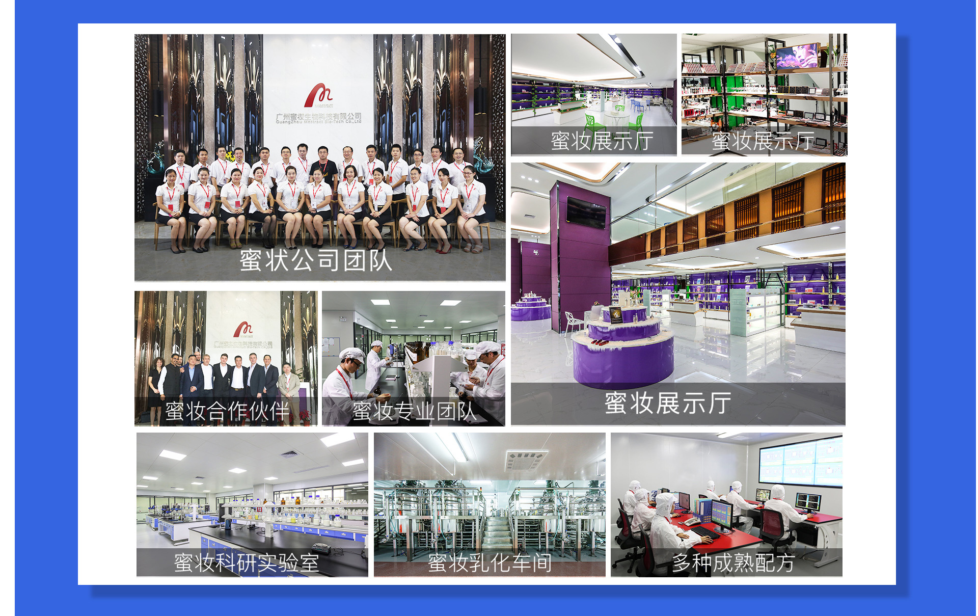 廣州蜜妝生物科技有限公司,是一家集化妝品原料研制、配方開發、加工生產及配套性服務為一體的全球化妝OEM/ODM服務企業。公司繼承兄弟企業葆妍生物科技的十幾年實力的積累,本著“追求卓越,秉承健康,成就美麗”的經營理念,經過十多年的不斷發展完善與技術提升,在行業內頗具口碑和影響力。 在葆妍十幾年的基礎上成立的蜜妝,延續高質量產品服務的同時,在研發、生產、品控、營銷等多方面升級,配備雄厚的科研力量,引進先進生產設備,遵循嚴苛的品質管理標準,提供專業的全方位營銷服務,最大程度地實現資源整合,致力于成為世界優秀化妝品工廠。 蜜妝源于對亞洲人肌膚和中國市場的透徹理解,秉承“為世界制造美”的偉大愿景,堅持“誠信經營,追求卓越,科技創新,以人為本”的核心價值觀,通過對基礎設備的投資,生物和納米技術的應用研究創新,以及服務實力的不斷升級,努力為終端顧客提供價值。