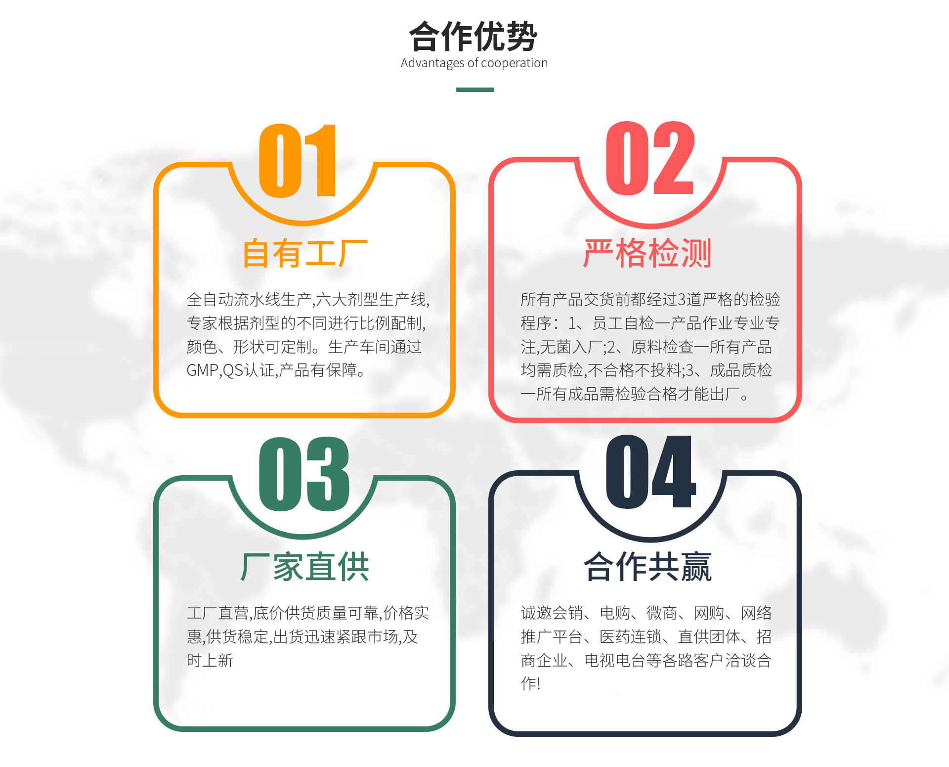 安徽美九九藥業(yè)有限公司是一家食品(固體飲料益生菌粉,壓片糖果)保健食品(藍(lán)帽氨糖鈣片 泡騰片 補(bǔ)鋅顆粒 軟膠囊 )營(yíng)養(yǎng)品(燕窩膠原蛋白,膠原蛋白肽飲液)消毒用品醫(yī)療器械(口罩,防護(hù)服,婦科凝膠)等的專業(yè)生產(chǎn)企業(yè),承接OEM ODM貼牌,私人訂制,只要你有想法,我們就能幫你生產(chǎn)出合法的產(chǎn)品。 免費(fèi)提供注冊(cè)商標(biāo)專業(yè)咨詢等各項(xiàng)服務(wù)。 公司與很多知名度高的大品牌都有合作代工業(yè)務(wù)。 并在上海楊浦區(qū),山東青島,河南鄭州等地設(shè)有分公司接待中心,歡迎你來電咨詢,到企業(yè)參觀考察洽談業(yè)務(wù),一次合作終身朋友。