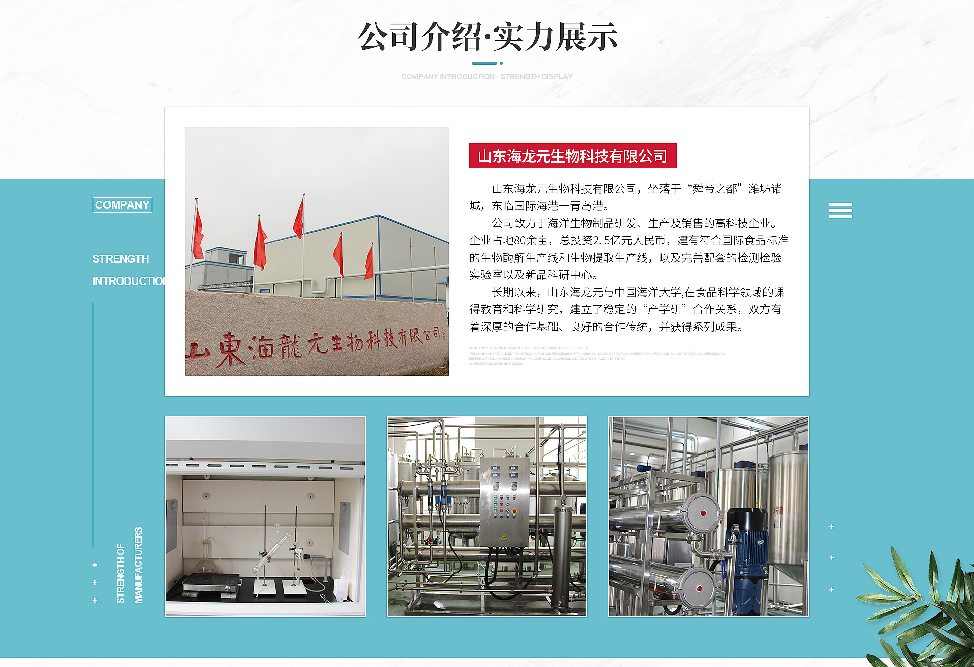 山東海龍元生物科技有限公司,掌握小分子蛋白肽、殼寡糖、南極磷蝦油生產的核心技術、并實現規模化生產。海龍元具有突出的行業地位、雄厚的技術研發實力和規模優勢,產品品質達到國際先進水平。