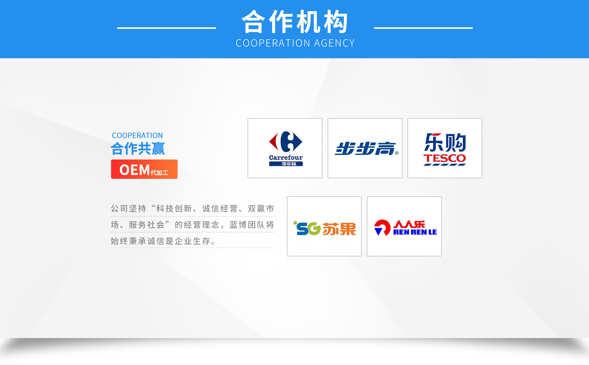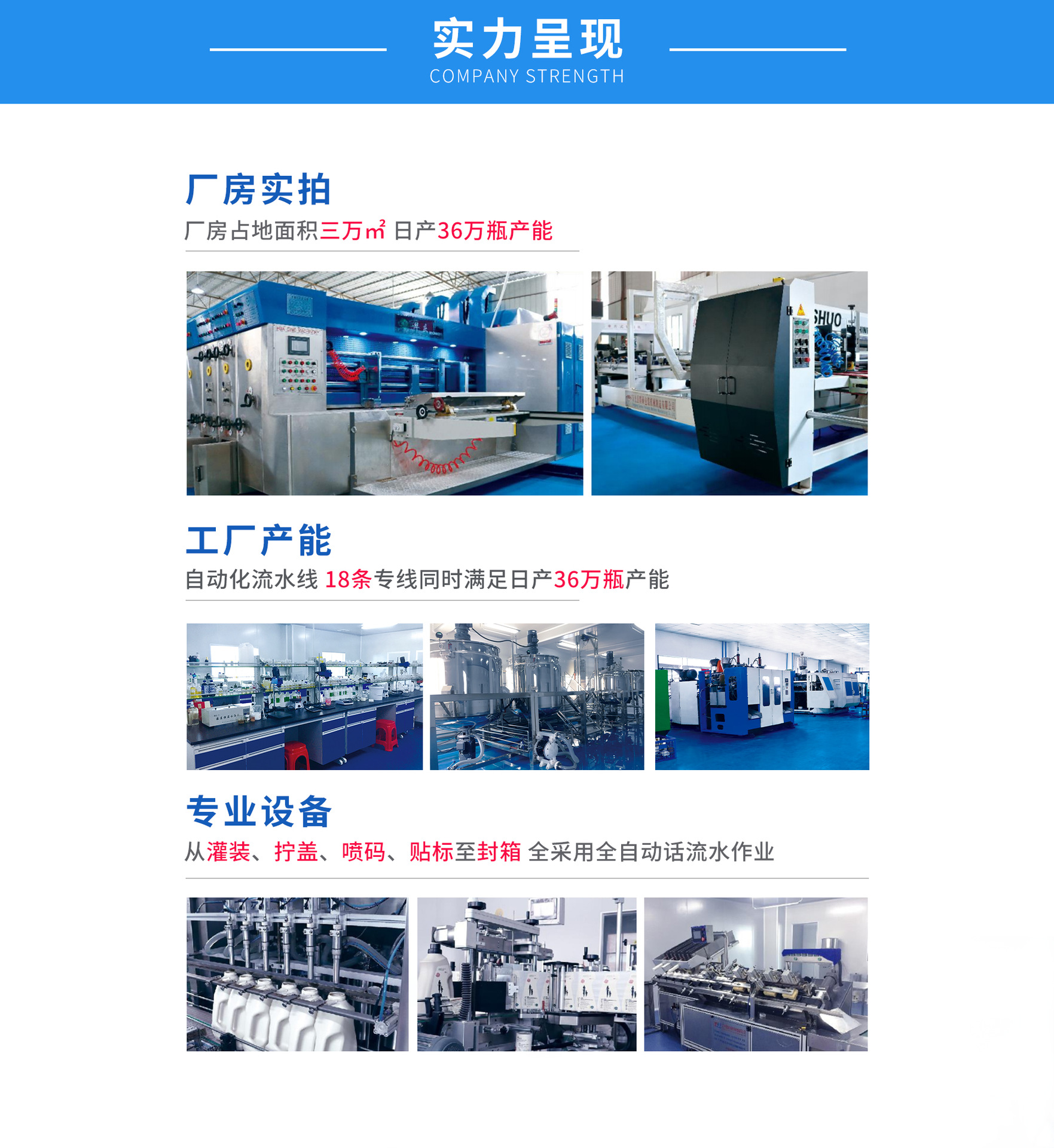 2019年廣東藍博生活日用品股份有限公司于佛山擴建,廠區(qū)占地三萬平方米,擁有現(xiàn)代化的標準廠房。采用全自動化流水線,引進先進的管理理念,18條專線同時滿足日產(chǎn)36萬瓶產(chǎn)能。2019年銷售額高達5個億 公司目前分別成立終端、oem代工事業(yè)部、線上事業(yè)部等;產(chǎn)品覆蓋了家居洗滌用品的所有品類,分為三大系列:衣物洗滌護理系列、個人護理系列、家居洗滌護理系列,從產(chǎn)品研發(fā)到客戶服務(wù)進行全程的細節(jié)管理,打造oem、odm、obm洗護品一站式服務(wù)。 產(chǎn)品暢銷全國20多個省份,160多個城市,進駐了大型連鎖超市家樂福、樂購和國內(nèi)蘇果超市、步步高,人人樂等,并與國內(nèi)多家知名的嬰童品牌建立了長期的代工合作關(guān)系,贏得了廣大消費者和廠家的認可和信賴。 公司堅持“科技創(chuàng)新、誠信經(jīng)營、雙嬴市場、服務(wù)社會"的經(jīng)營理念,藍博團隊將始終秉承"誠信是企業(yè)生存目前全國分廠廣州佛山廣西廣州花都廣東清遠成都等等。