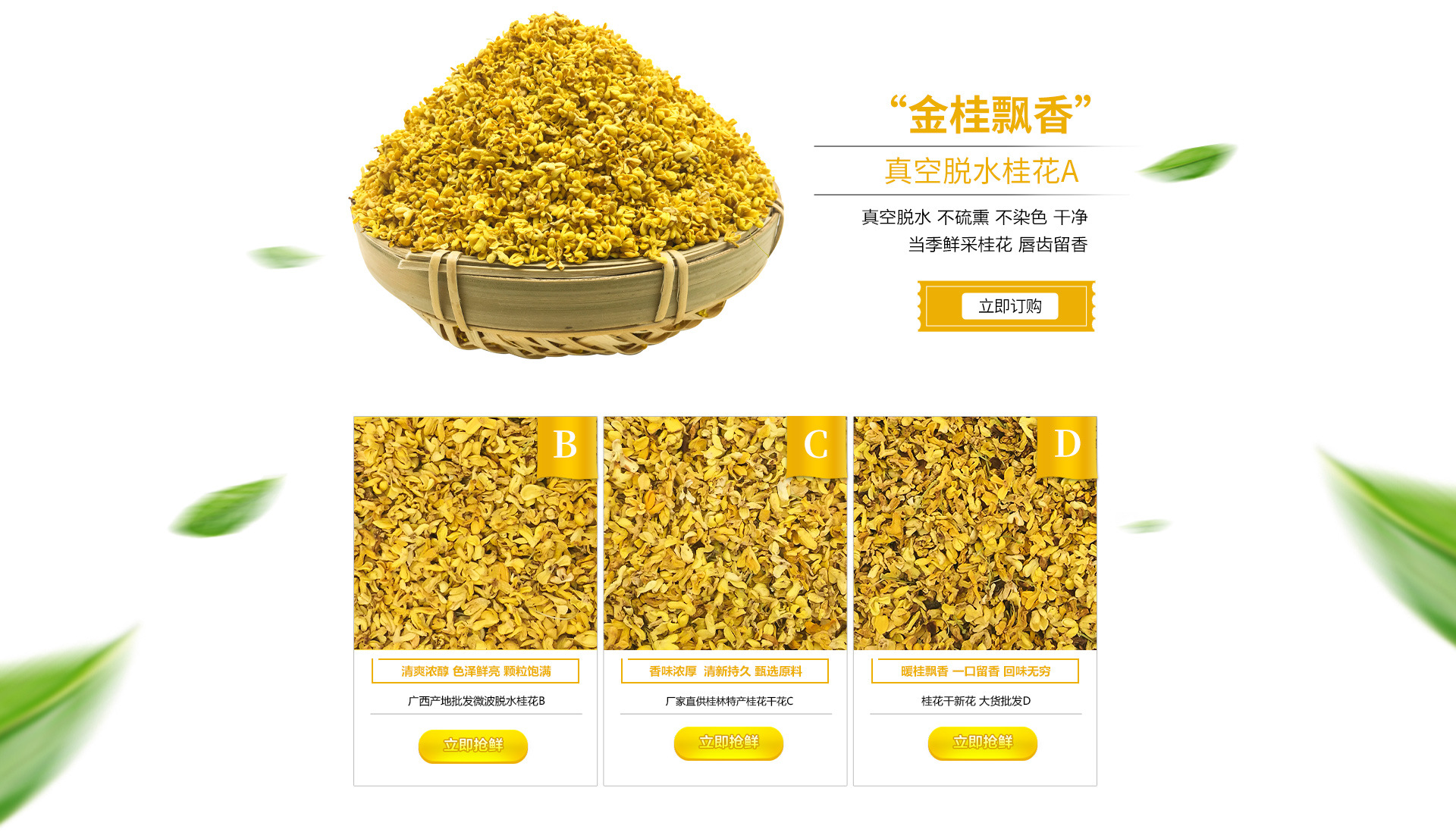 本廠以農戶生產加工為模式,自產自銷的方式而發展。自1996年成立以來,長年大量生產加工桂花、桂花干、桂花茶、金桔片、苦瓜干、羅漢果、菊花以及其他花草(果)茶等。本廠產品質優價低,產品銷往各地,并對出口港澳臺地區、東南亞等國家的公司、客商提供貨源。我廠本著“誠實守信、質量為本”的商業原則為廣大客戶服務。歡迎廣大客戶光臨惠顧,實地考察。