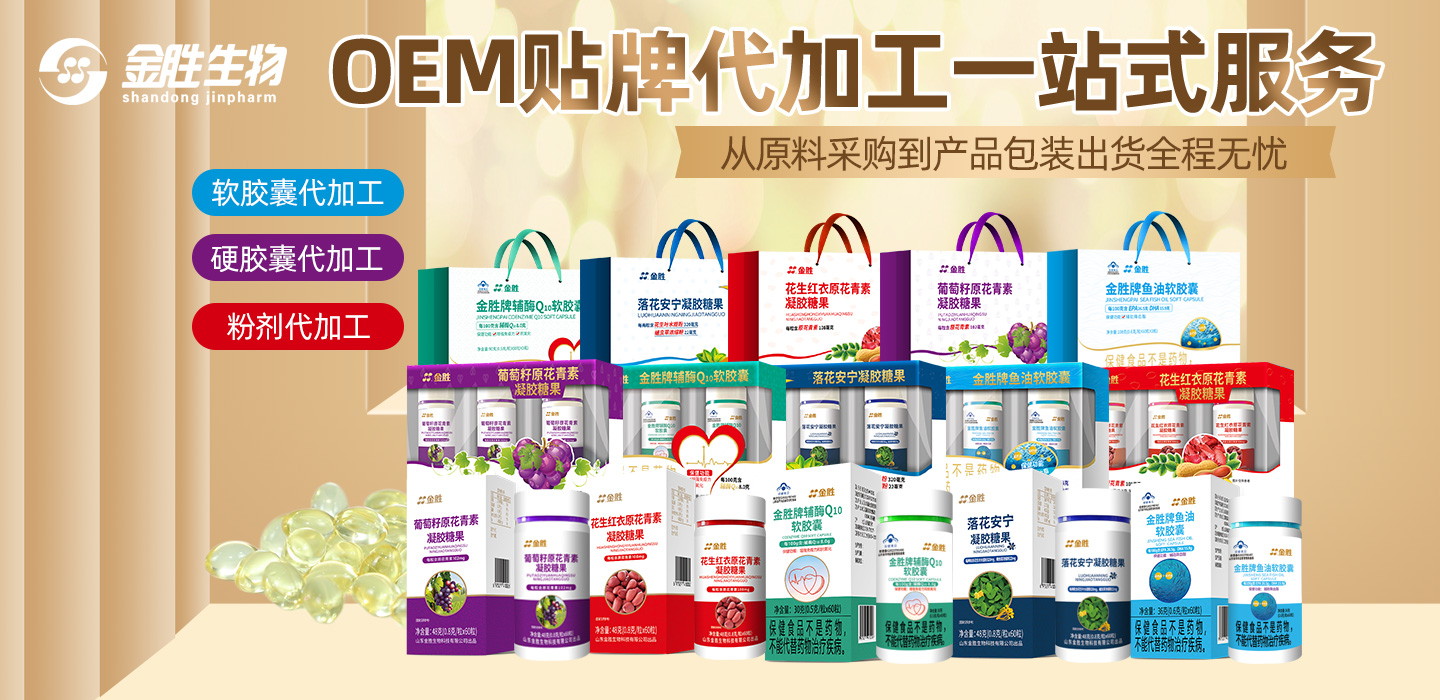 山東金勝生物科技有限公司,隸屬于金勝集團,于2015年建廠,擁有先進的生產設備,多種類型包裝生產線,專業的研發團隊,配套有符合GMP要求的10萬級的潔凈車間。公司建有先進的提取、提純、解析、濃縮、干燥生產線,以及進口大型軟膠囊生產線、粉劑生產線、硬膠囊生產線、全自動數粒瓶裝機、鋁塑包裝機等先進的生產設備,為您提供全方位一站式服務,為客戶提供多元化、多品類產品服務方案,涵蓋從原料提取、批文落戶、標準制訂、配方設計、貼牌定制、加工成品等一系列OEM代工服務。