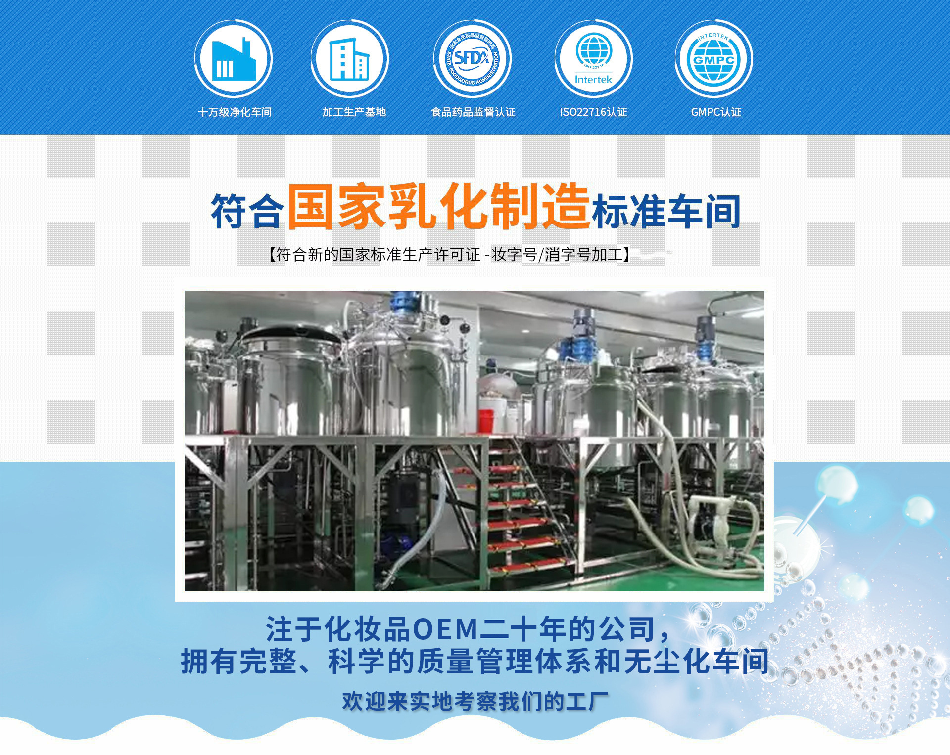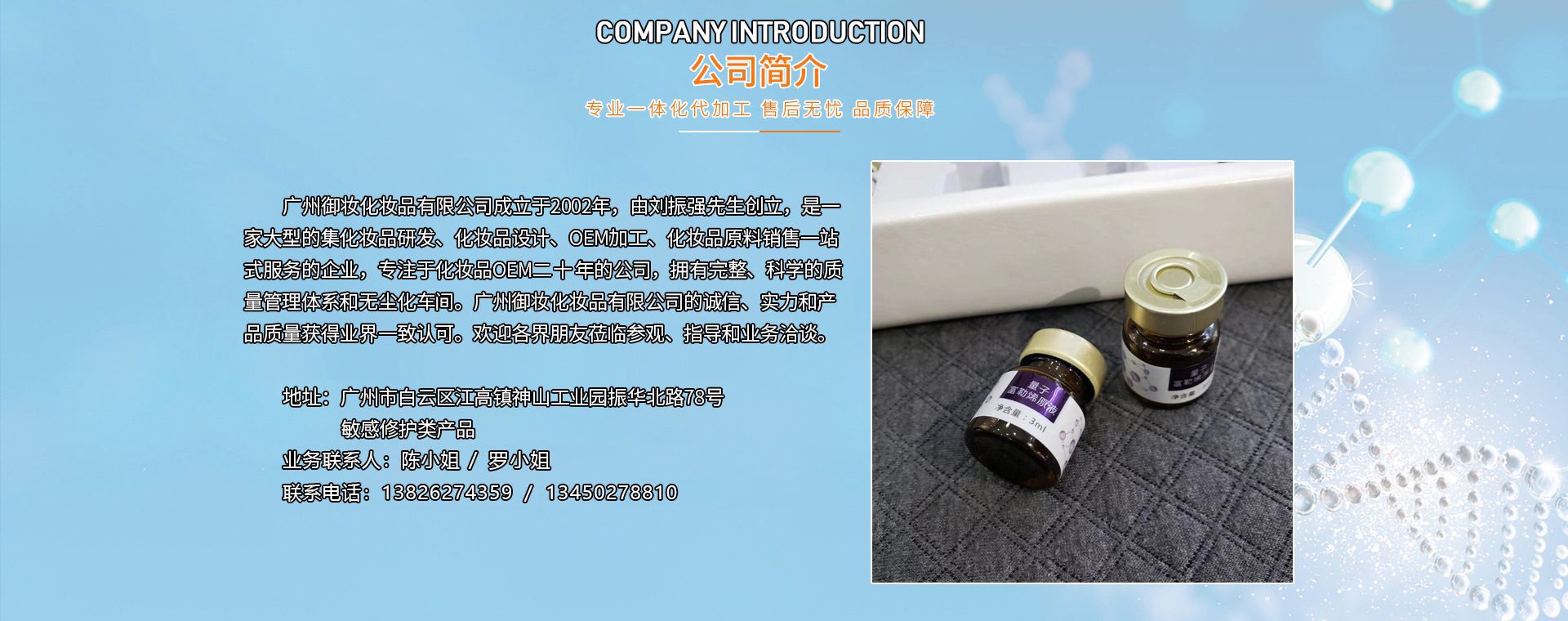 御妝國際(廣州御妝化妝品有限公司),成立于2002年,是世界十三個國家和地區的170家外資企業集聚地,擁有約30000平方米生產基地,其中倉儲面積大概8000平方,生產面積19000平方,辦公面積3300平方。經過19年的發展已經成為一家集研發、生產、 策劃、營銷為一體的國際化妝品公司。 御妝國際致力于成為美業領先的以活性化妝品為核心的尖端科技護膚夢工廠,追求質量安全并專注于高純度、高濃度、高鮮活、高效能、高舒適的化妝品技術開發與制造,面向新美容與新媒體護膚市場和品牌,提供專業的一站式活性化妝品定制解決方案