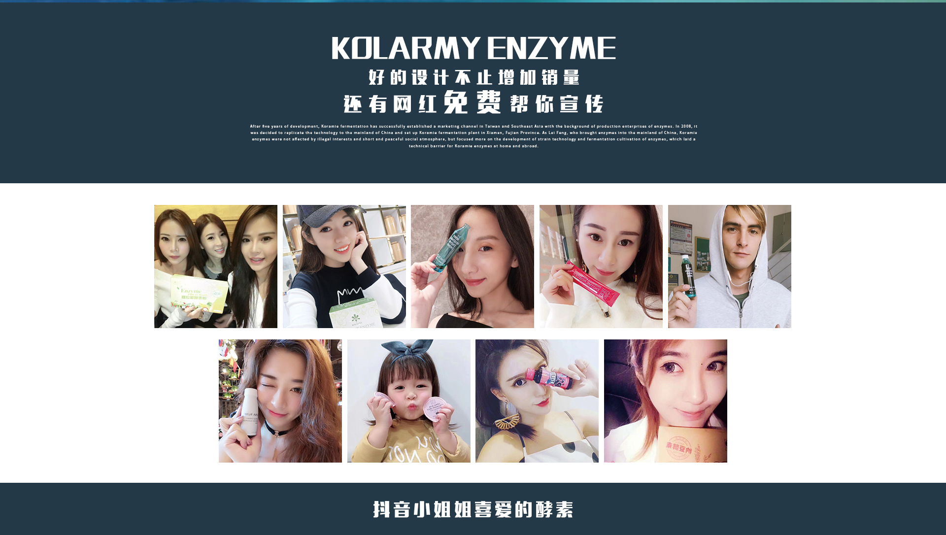 廈門蔻拉蜜生物科技有限公司是酵素原液、酵素粉、酵素、酵素固體飲料等產(chǎn)品專業(yè)生產(chǎn)加工的公司。 在臺灣及內(nèi)地皆有設(shè)廠的酵素生產(chǎn)廠家,專注酵素研發(fā)20年。蔻拉蜜嚴(yán)格執(zhí)行 ISO9001:2000國際質(zhì)量管理體系認(rèn)證及SC中國國家食品質(zhì)量安全生產(chǎn)許可標(biāo)準(zhǔn)。 蔻拉蜜酵素在蔬果植物酦酵領(lǐng)域的專利,研究,產(chǎn)官學(xué)研合作案,制程專業(yè)化上早已領(lǐng)先同業(yè),是華人酵素的研發(fā)廠家。蔻拉蜜酵素本著「以天下人健康為己任,以自然回歸健康為宗旨」的初衷踏實(shí)經(jīng)營,秉持誠懇的態(tài)度持續(xù)深耕,堅(jiān)持采用天然的蔬果植物做為原料,扎實(shí)地投入產(chǎn)品創(chuàng)新研究及工廠的專業(yè)制程,堅(jiān)持「自行研發(fā),一貫生產(chǎn)」。