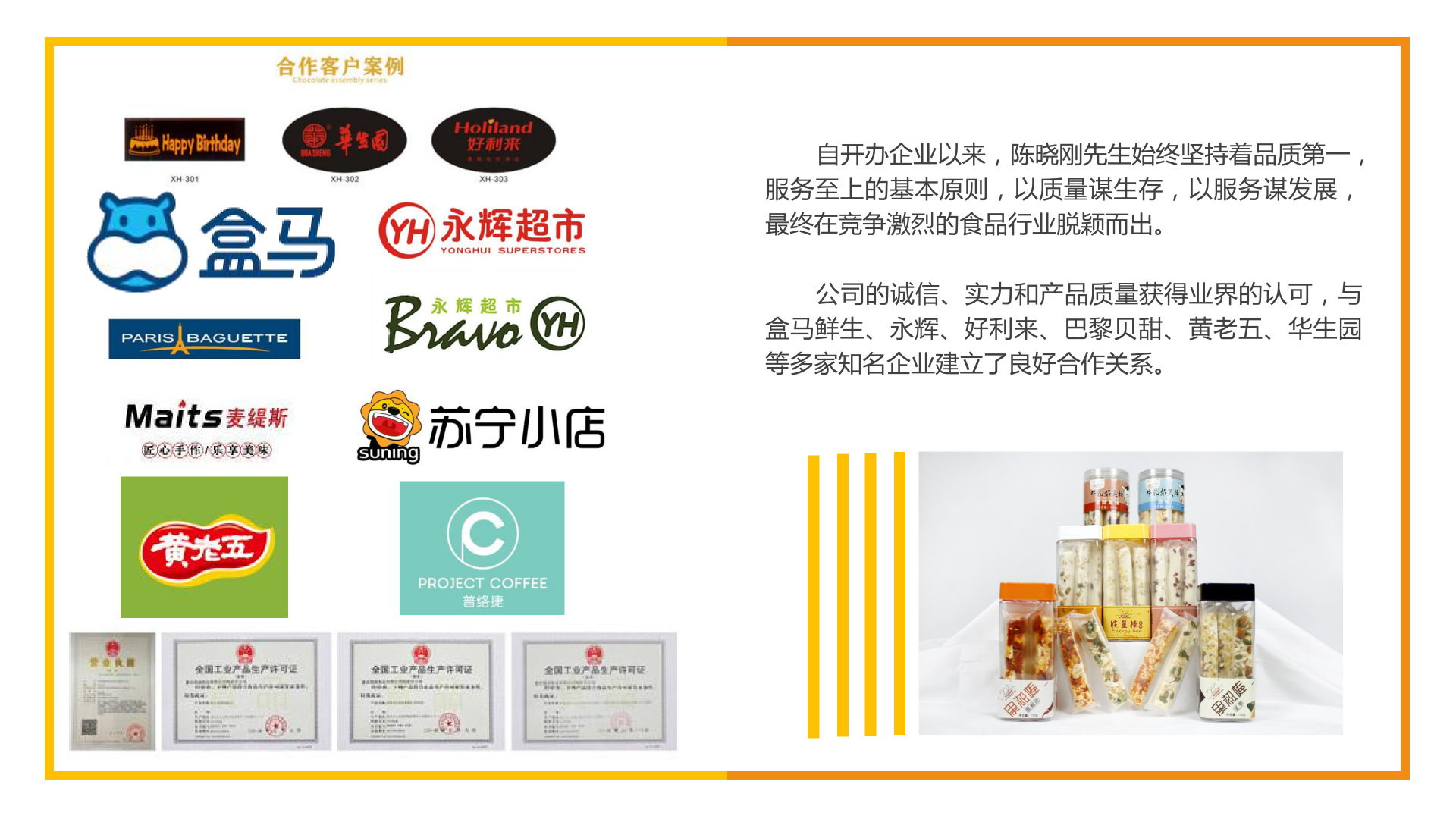 錫涵食品是一家手工餅干、糕點、糖果等深加工制造源頭企業。產品多達百種,已同國內知名企業如好利來、盒馬、永輝等合作。錫涵食品歡迎您洽談,2020年是食品發展紅利期 歡迎新老客戶(各大渠道)合作 支持一件代發 電商朋友大家可以一起交流運營經驗共同發展