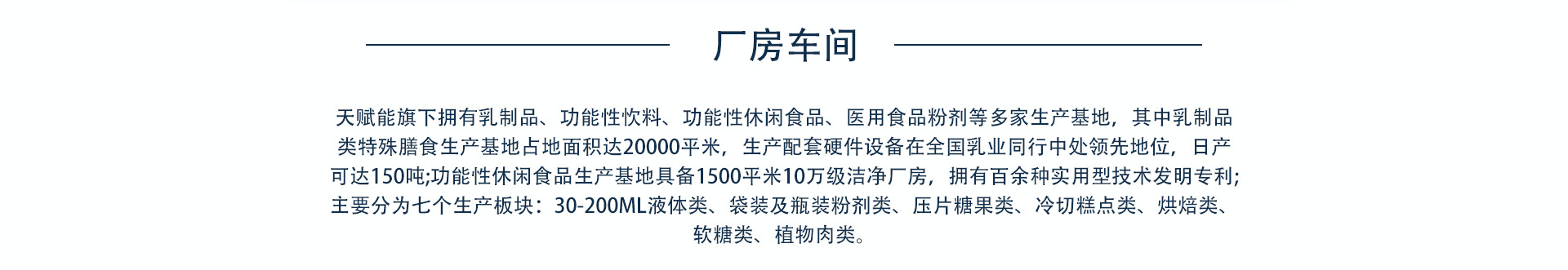極美(天津)功能食品研究發(fā)展中心(有限合伙)是功能食品、特殊膳食、蛋白棒、蛋白肉等產(chǎn)品專業(yè)生產(chǎn)加工的公司,擁有完整、科學(xué)的質(zhì)量管理體系。 2000平米的10萬(wàn)級(jí)中試車間,20000平米的功能食品和飲品生產(chǎn)線,擁有多條液體生產(chǎn)線、粉劑生產(chǎn)線、壓片糖果生產(chǎn)線、蛋白棒生產(chǎn)線、凝膠糖果生產(chǎn)線、夾心餅干生產(chǎn)線、凍干產(chǎn)品生產(chǎn)線、代用茶生產(chǎn)線。 極美共享工廠依托天賦能集團(tuán),擁有中國(guó)科學(xué)院、中國(guó)中醫(yī)科學(xué)院、食品營(yíng)養(yǎng)與安全國(guó)家重點(diǎn)實(shí)驗(yàn)室、北美功能食品研究院等科研單位的技術(shù)支持,擁有權(quán)威專家及學(xué)者、醫(yī)學(xué)博士、國(guó)家級(jí)高級(jí)營(yíng)養(yǎng)師的研發(fā)團(tuán)隊(duì)。 極美(天津)功能食品研究發(fā)展中心(有限合伙)的誠(chéng)信、實(shí)力和產(chǎn)品質(zhì)量獲得業(yè)界的認(rèn)可。歡迎各界朋友蒞臨參觀、指導(dǎo)和業(yè)務(wù)洽談。