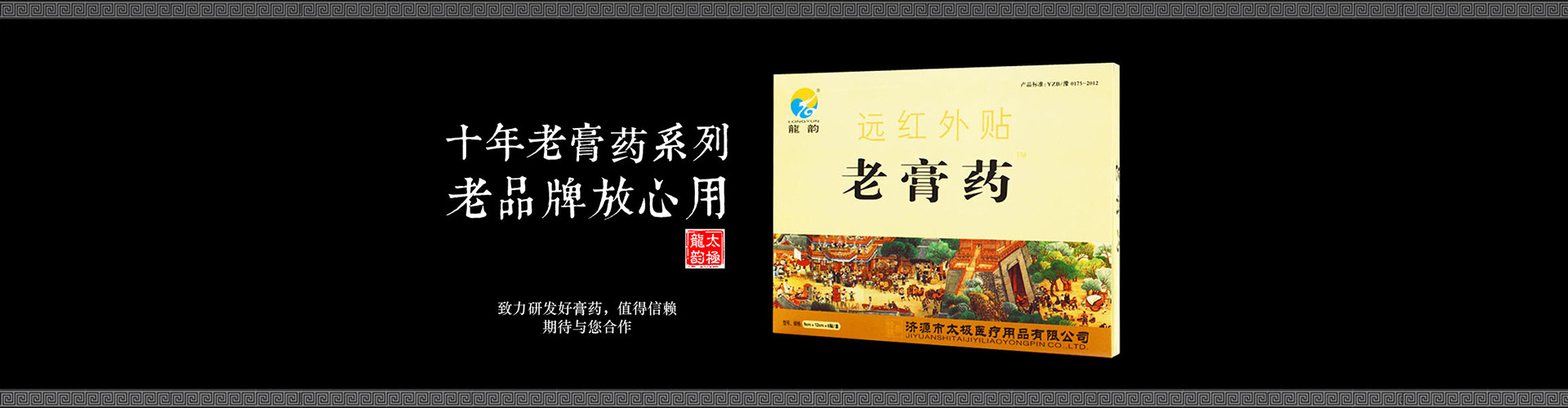 巍巍太行山,莽莽蒼蒼,集南北之靈秀。群山環抱之中、青山綠水之間,矗立著一家現代化的高科技企業--濟源太極醫療用品有限公司,公司是濟源首家高科技膏劑生產企業。濟源市太極醫療用品有限公司是膏藥、固定敷料,透皮貼,退熱貼、理療貼、眼貼、冷敷貼、抑菌液、抑菌粉、抑菌凝膠、抑菌膏等產品專業生產加工的公司,擁有完整、科學的質量管理體系。濟源市太極醫療用品有限公司的誠信、實力和產品質量獲得業界的認可。歡迎各界朋友蒞臨參觀、指導和業務洽談。