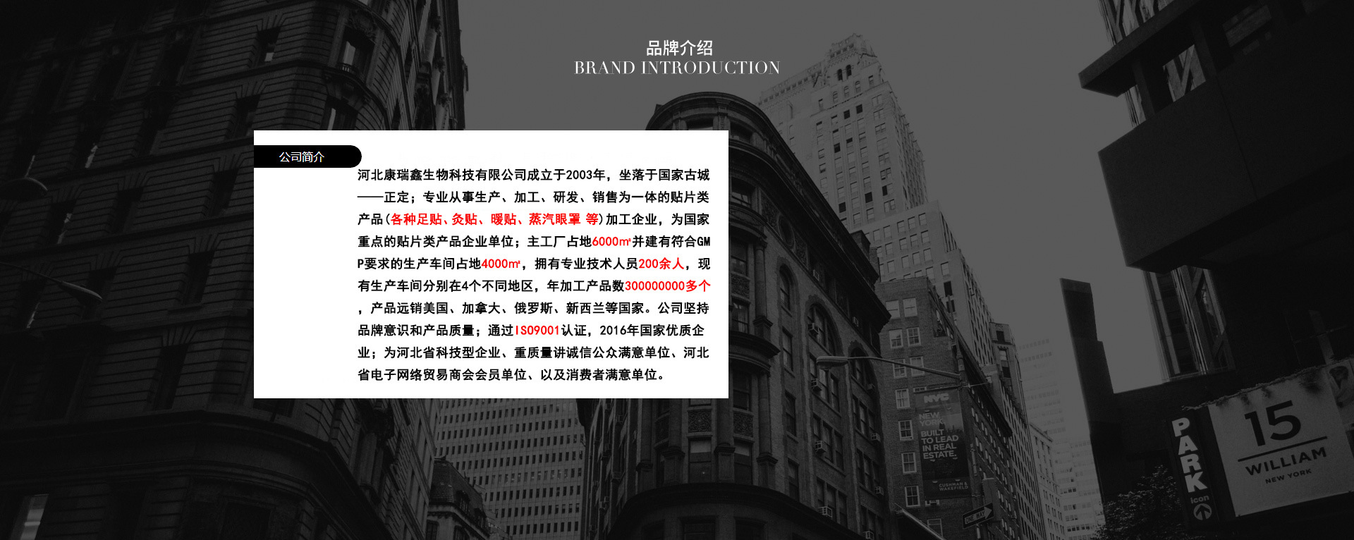 河北康瑞鑫生物科技有限公司成立于2003年,坐落于河北 石家莊;專業從事生產、加工、研發、銷售為一體的貼片類產品(各種足貼、灸貼、暖貼、冰涼貼、蒸汽眼罩等)加工企業,為國家重點的貼片類產品企業單位;主工廠占地6000㎡并建有符合GMP要求的生產車間占地4000㎡,擁有專業技術人員200余人,現有生產車間分別在4個不同地區,年加工產品數300000000多個,產品遠銷美國、加拿大、俄羅斯、新西蘭等國家。公司堅持品牌意識和產品質量;通過ISO9001認證,2016年國家優質企業;為河北省科技型企業、重質量講誠信公眾滿意單位、河北省電子網絡貿易商會會員單位、以及消費者滿意單位