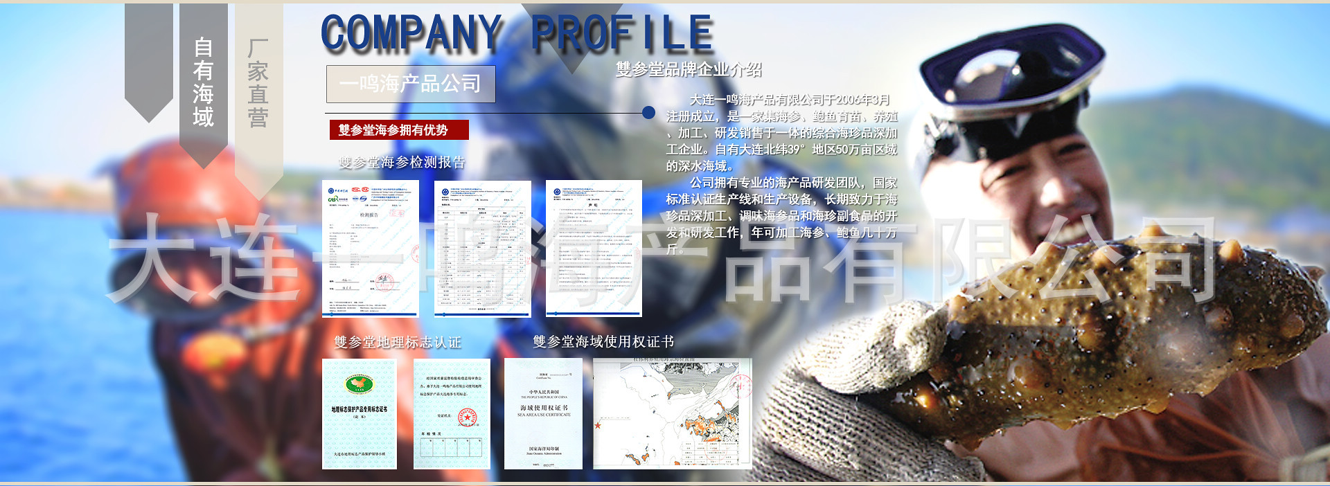 大連一鳴海產品有限公司于2006年3月注冊成立,是一家集海參、鮑魚育苗、養殖、加工、研發、銷售為一體的綜合海珍品深加工企業。