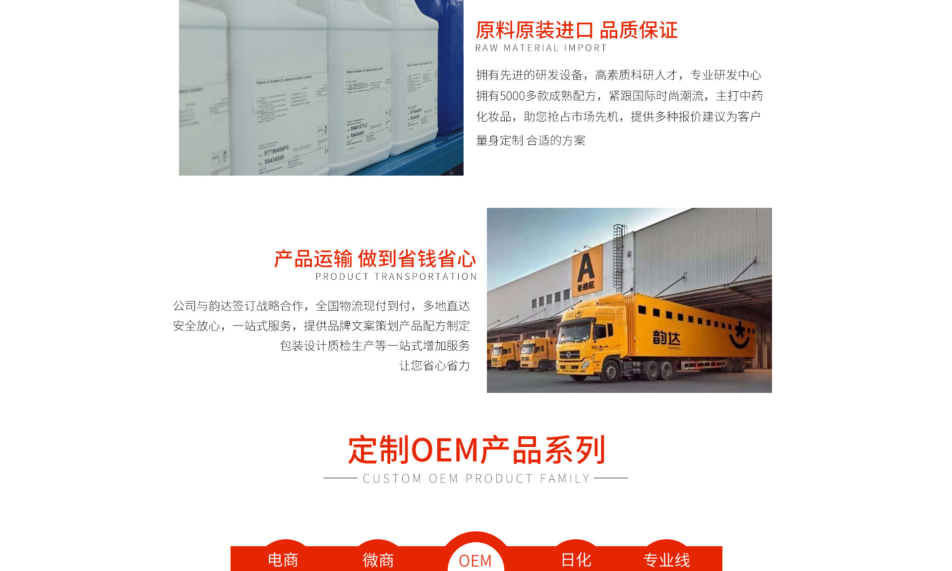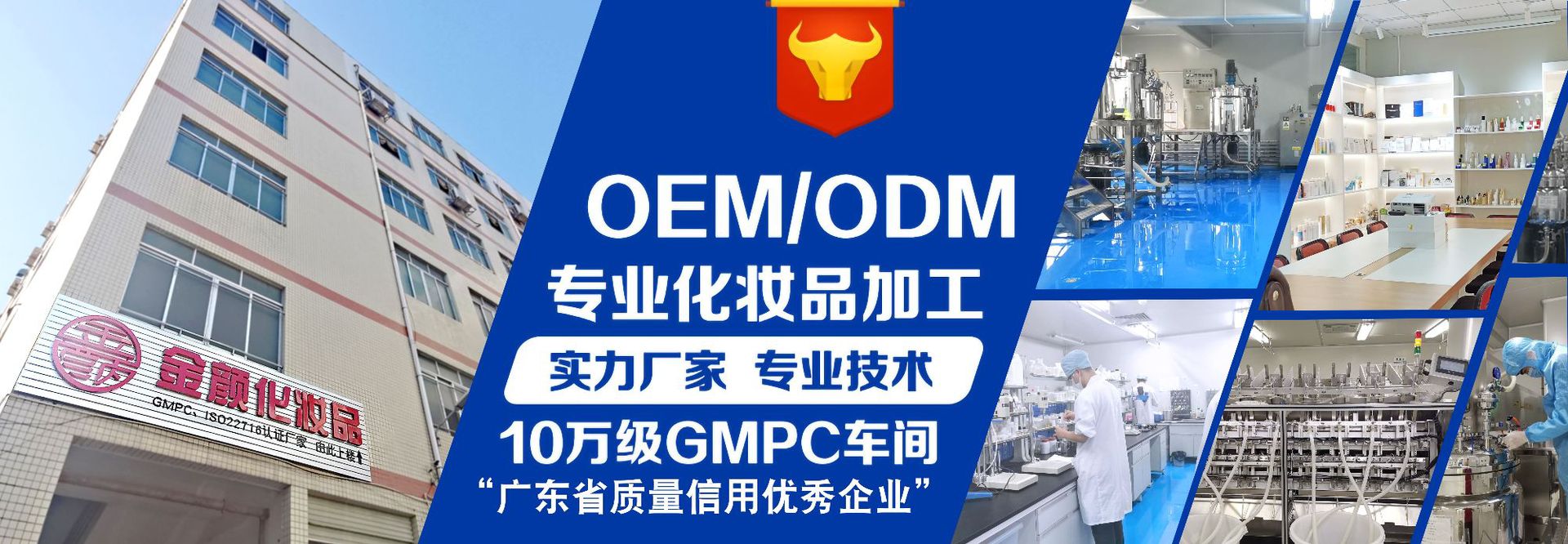 金顏公司是一家GMPC、ISO22716良好管理規范認證的廣州化妝品生產廠家,擁有妝字號、械字號生產許可。工廠專注面膜、男士化妝品的生產加工。提供化妝品免費打樣、免費設計、高級定制,廠家直銷、沒有中間商。