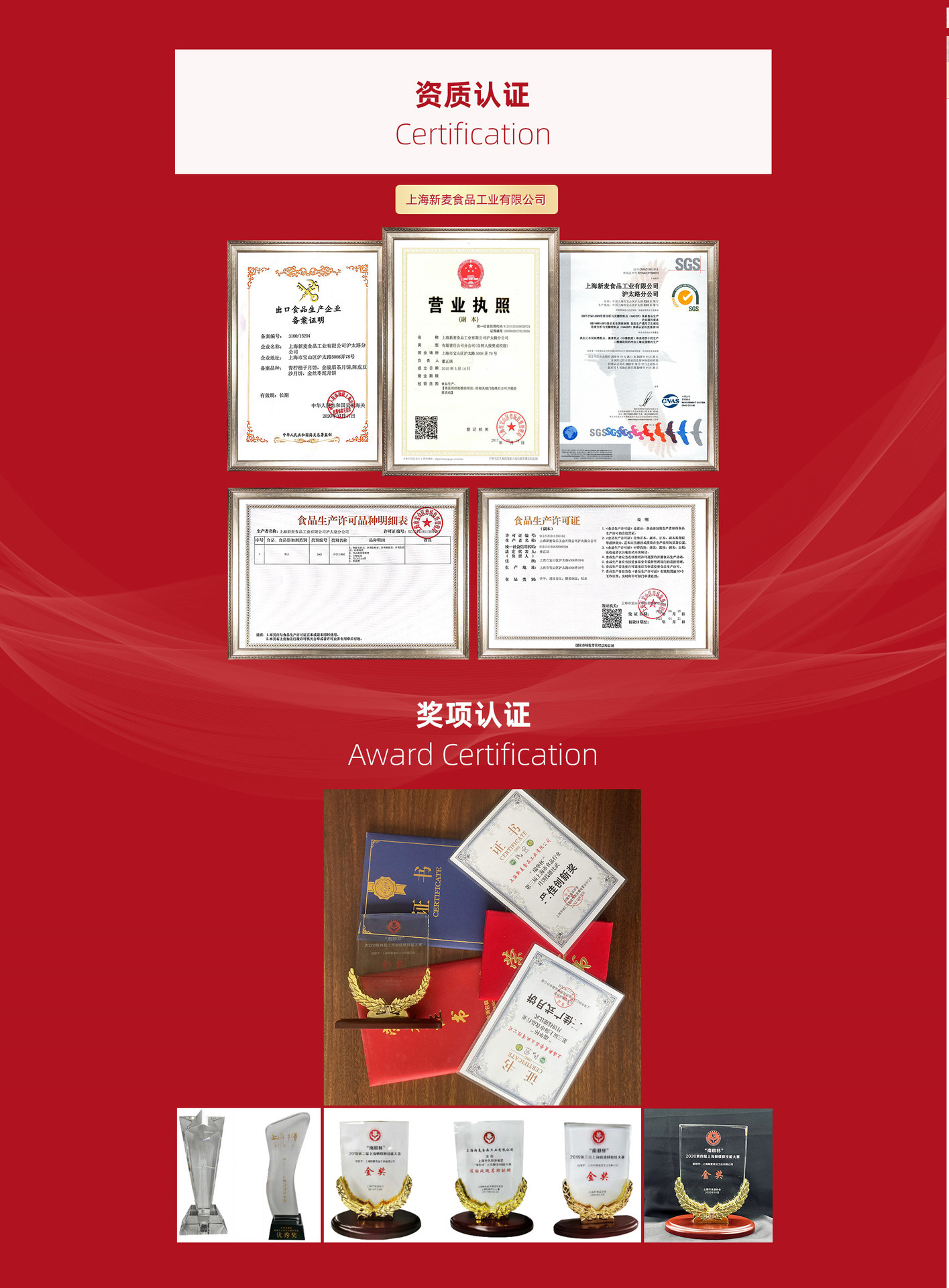 上海新麥已經成立了二十四年,積累了豐富的行業經驗及線下渠道資源。公司擁有自己的土地和廠房,廠長及車間主任都在烘焙行業有超過二十年的行業資歷。新麥有自己的產品研發團隊,并且在日本東京有合作的研發基地,對于烘焙產品,我們是認真專業的。 我們的客戶群有:來伊份、杏花樓、五芳齋、百草味、美團、叮咚買菜、奈雪的茶、盒馬、故宮、Prada、LV、哈爾濱食品廠...