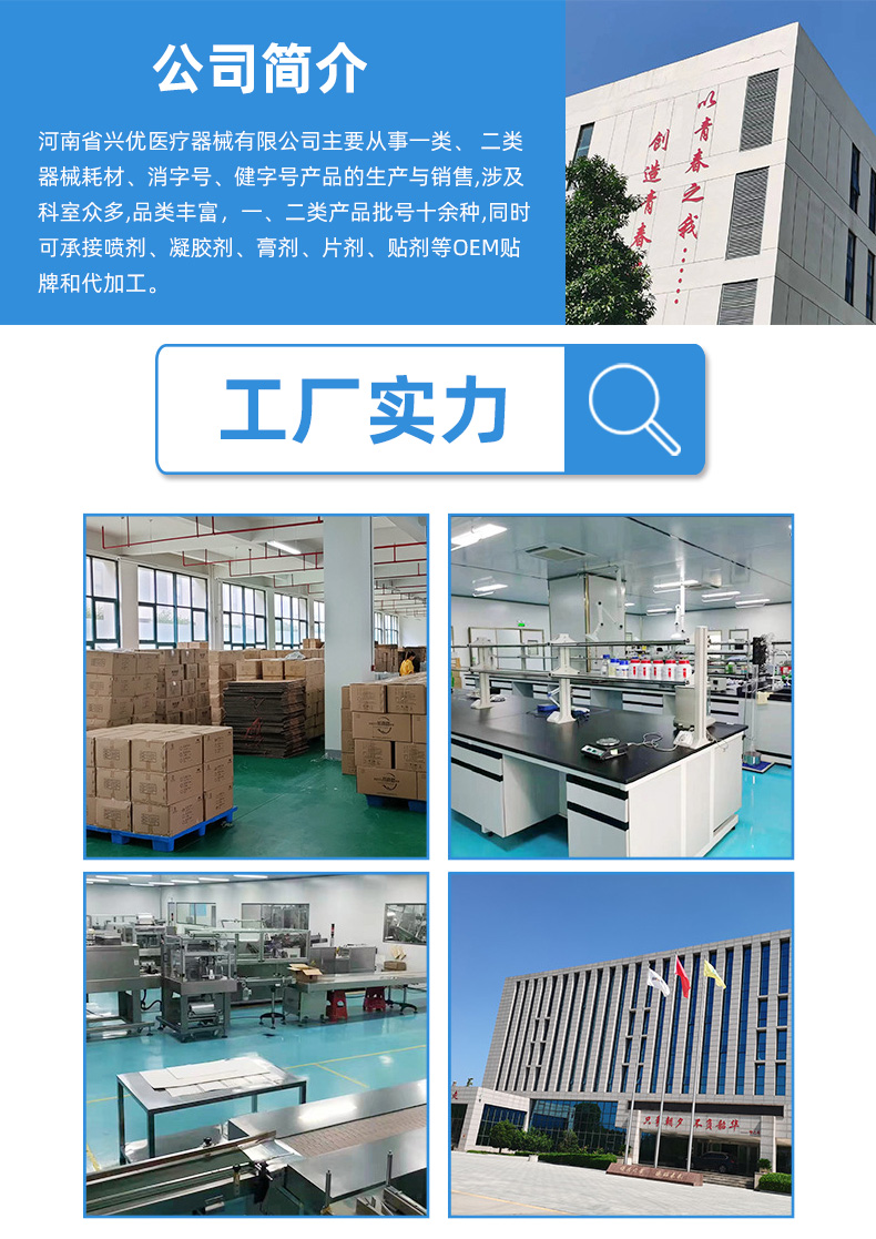 河南省興優(yōu)醫(yī)療器械有限公司主要從事一類、 二類器械耗材、消字號(hào)、健字號(hào)產(chǎn)品的生產(chǎn)與銷售,涉及科室眾多,品類豐富,一、二類產(chǎn)品批號(hào)十余種,同時(shí)可承接噴劑、凝膠劑、膏劑、片劑、貼劑等OEM貼牌和代加工。