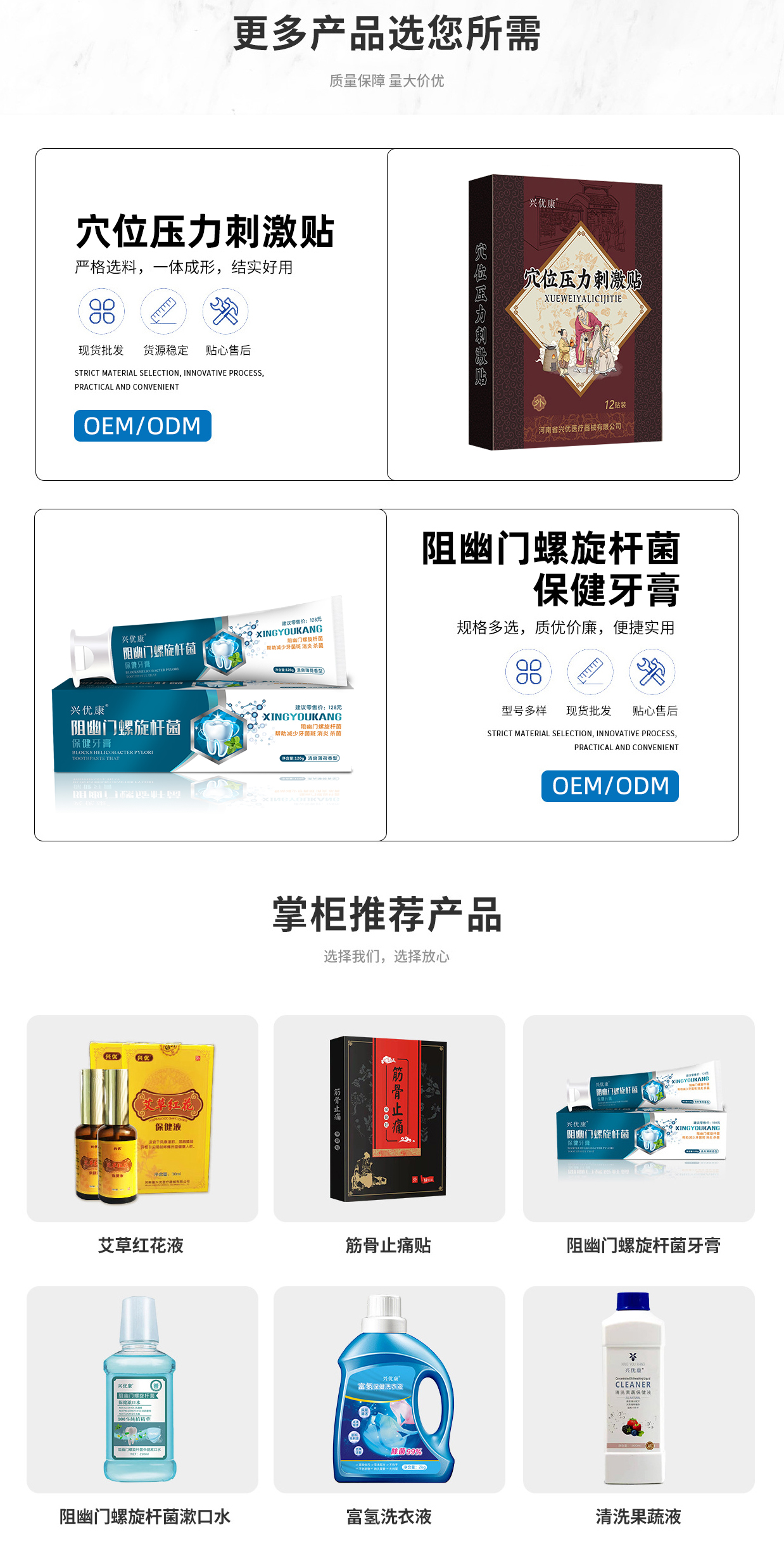 興優(yōu)能夠提供給您:讓你的產(chǎn)品系統(tǒng)化,不受控銷限制,自己就是總經(jīng)銷;利潤空間大;可以擁有自己的品牌; OEM貼牌代加工一站式服務(wù)從研發(fā)人才到一線的生產(chǎn)員工,從運(yùn)營中心的高管到一線的銷售人才,人員規(guī)模達(dá)到2000之多,80%以上的員工具有生物制藥、化車間6000m、標(biāo)準(zhǔn)化倉庫2000m,擁有10萬級(jí)凈化提取間、實(shí)驗(yàn)室、反應(yīng)間和先進(jìn)的研發(fā)、生產(chǎn)、檢查設(shè)備。實(shí)力和產(chǎn)品質(zhì)量獲得業(yè)界的認(rèn)可。歡迎各界朋友蒞臨參觀、指導(dǎo)和業(yè)務(wù)洽談,本公司支持加工定制不同規(guī)格檔次產(chǎn)品,具體的包裝定制數(shù)量,打印自己公司廣告,地址電話等問題請(qǐng)與我司客服聯(lián)系!