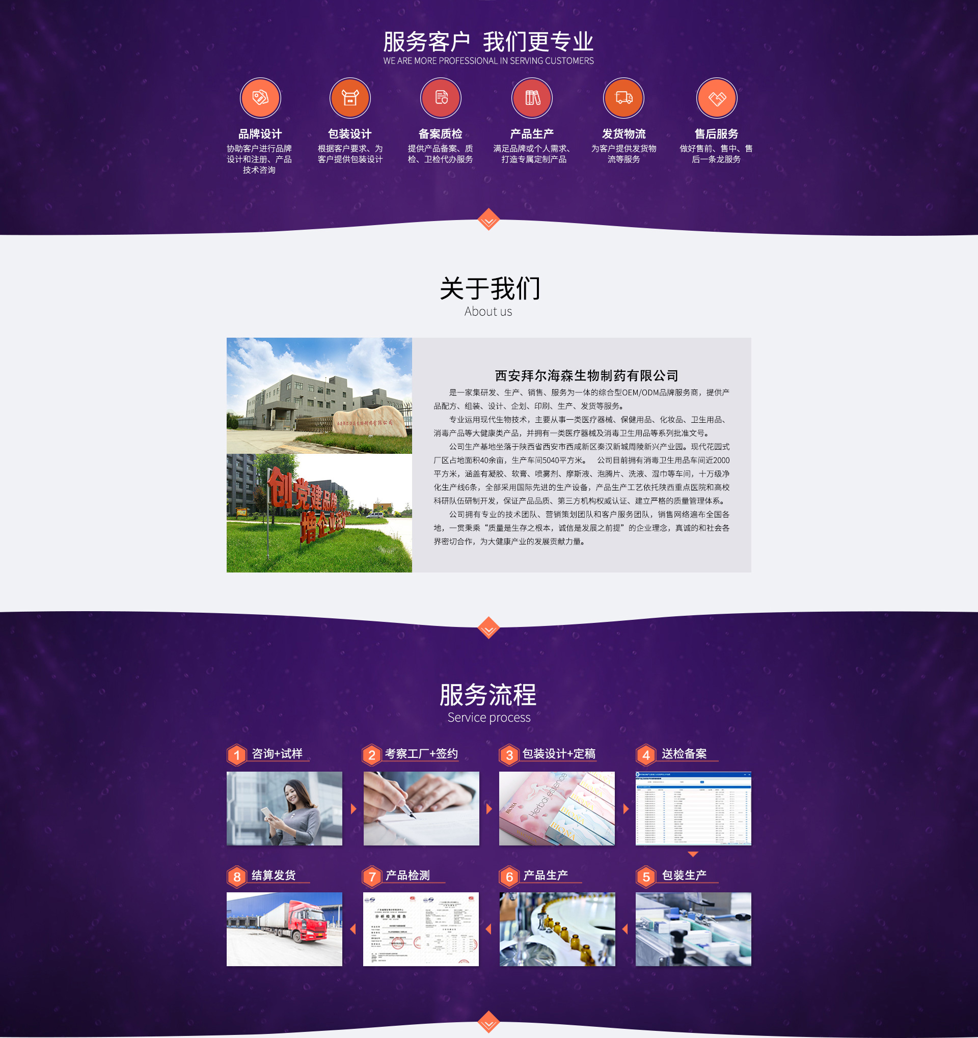 西安拜爾海森生物制藥有限公司,是一家集研發、生產、銷售、服務為一體的綜合型OEM/ODM品牌服務商,提供產品配方、組裝、設計、企劃、印刷、生產、發貨等服務。 專業運用現代生物技術,主要從事一類醫療器械、保健用品、化妝品、衛生用品、消毒產品等大健康類產品,并擁有一類醫療器械及消毒衛生用品等系列批準文號。 公司生產基地坐落于陜西省西咸新區秦漢新城周陵新興產業園。現代花園式廠區占地面積40余畝,生產車間5040平方米。 公司目前擁有消毒衛生用品車間近2000平方米,涵蓋有凝膠、軟膏、噴霧劑、摩斯液、泡騰片、洗液、濕巾等車間,十萬級凈化生產線6條,全部采用國際先進的生產設備,產品生產工藝依托陜西重點醫院和高校科研隊伍研制開發,保證產品品質、第三方機構權威認證、建立嚴格的質量管理體系。 公司擁有專業的技術團隊、營銷策劃團隊和客戶服務團隊,銷售網絡遍布全國各地