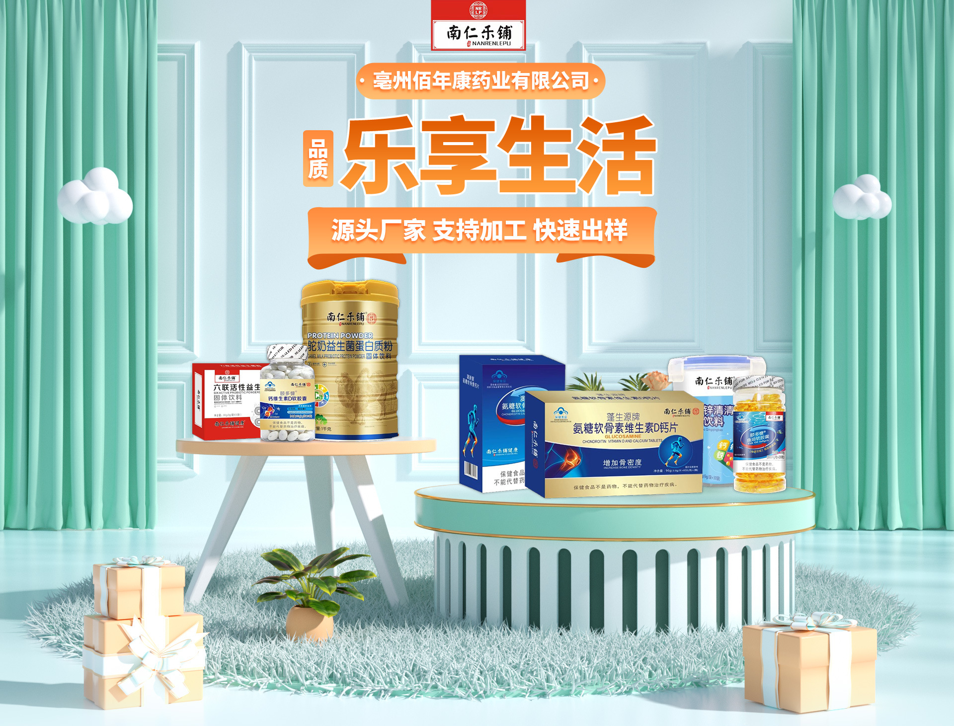 亳州佰年康藥業有限公司專業從事生產、銷售、服務于一體的企業,目前公司擁有多個自主品牌,其中自主品牌“南仁樂鋪”深受大家喜愛,擁有許多新老客戶。我們秉承“用質優放心原料、合理專業配比”的企業使命,以現代生物技術為先導,注重本土自然資源的開發、整合及綜合運用,憑借企業雄厚實力,充分運用高科技術。 在益生菌、壓片糖果及營養食品方面形成了突出優勢,工廠主營產品有氨糖軟骨素鈣、益生菌、葡萄籽膠原蛋白等多種系列產品。
