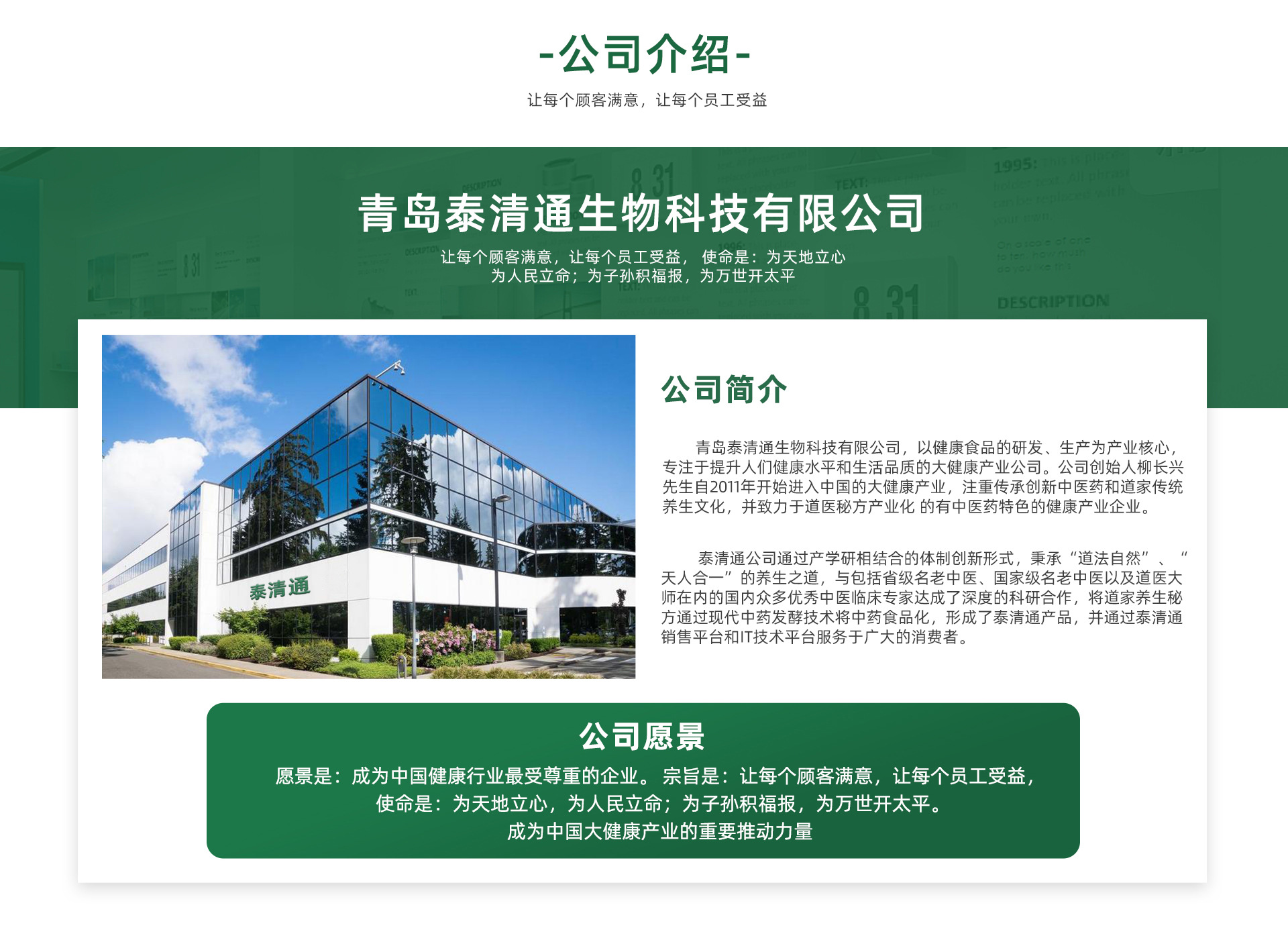 青島泰清通生物科技有限公司是酵素、人參液、通五行排毒等產(chǎn)品專業(yè)生產(chǎn)加工的公司,擁有完整、科學(xué)的質(zhì)量管理體系。青島泰清通生物科技有限公司的誠(chéng)信、實(shí)力和產(chǎn)品質(zhì)量獲得業(yè)界的認(rèn)可。歡迎各界朋友蒞臨參觀、指導(dǎo)和業(yè)務(wù)洽談。