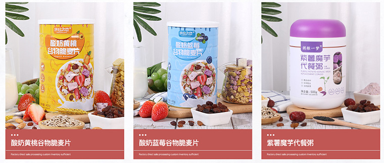 山東天歌生物科技有限公司以研發、制造、營銷于一體的現代化方便休閑食品企業 企業引領中國食品行業為使命,打造中國高端粗糧方便食品第一品牌 山東天歌生物科技有限公司具有一流的管理,營銷團隊,企業堅持人人是人才,學習靠自我的原則,不斷涌現行業一流人才 山東天歌生物科技有限公司未來愿景是:建立粗糧方便食品產業鏈,致富于民,提高國民生活質量 公司產品 酸奶果粒麥片系列 粗糧系列 黑芝麻芝麻核桃桑葚粉(500g罐裝) 紅豆薏米粉(500g罐裝) 紅棗銀耳羹(500g罐裝袋裝) 堅果藕粉系列 桂花奇亞籽藕粉羹(500g袋裝) 奇亞籽堅果速溶藕粉羹(400g500g罐裝袋裝) 企業文化 山東天歌生物科技有限公司愿景:做中國最好的粗糧方便食品,天歌使命:引領中國方便食品行業傳播休閑健康時尚快樂的方便食品文化 天歌價值觀:誠信 守信 勤勞 共贏 有愛心 不走捷徑