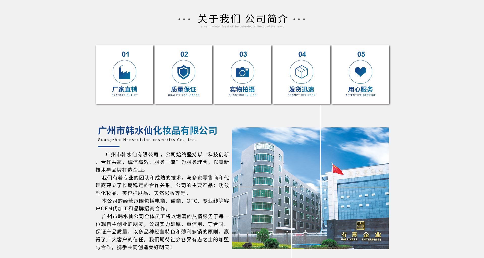 廣州韓水仙化妝品有限公司是化妝品、洗護(hù)用品等產(chǎn)品專業(yè)生產(chǎn)加工的公司,擁有完整、科學(xué)的質(zhì)量管理體系。廣州韓水仙化妝品有限公司的誠信、實(shí)力和產(chǎn)品質(zhì)量獲得業(yè)界的認(rèn)可。歡迎各界朋友蒞臨參觀、指導(dǎo)和業(yè)務(wù)洽談