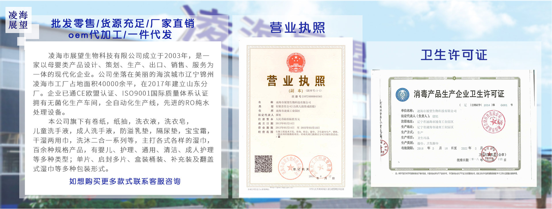 公司成立于2003年,擁有17年生產研發經驗,工廠占地面積7萬余平。濕巾日產100萬包,洗衣液日產4萬桶。公司自有原材料無紡布、包裝蓋和洗衣液桶的生產線及注塑車間。生產全鏈路輔材全配套的現代化企業。可以為網購平臺、自媒體達人網紅、社群社交電商平臺,供應鏈類直銷平臺,微商、拼團團購類等渠道提供服務!