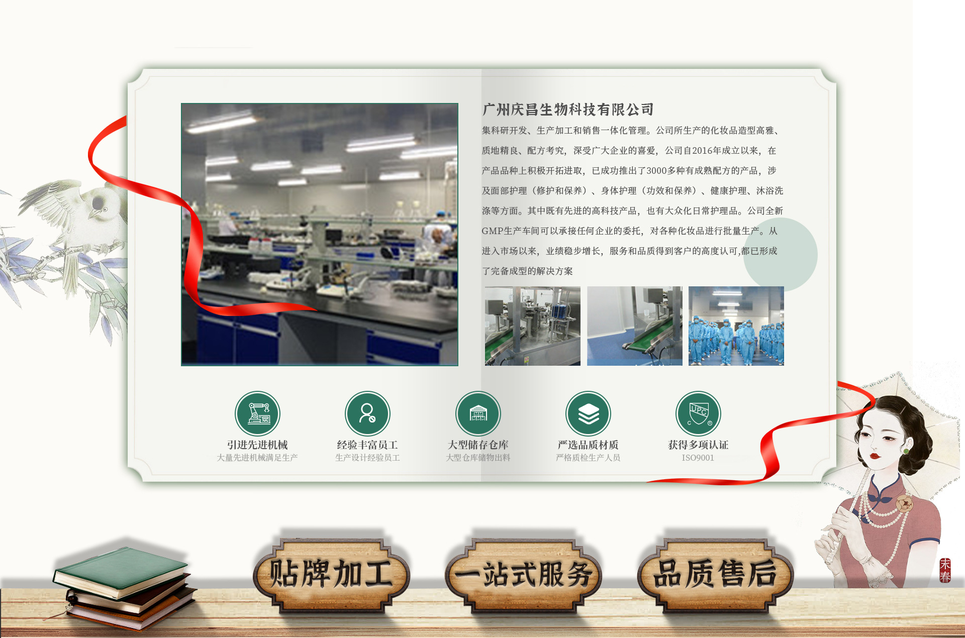 廣州慶昌生物科技有限公司集科研開發(fā)、生產(chǎn)加工和銷售一體化管理。公司所生產(chǎn)的化妝品造型高雅、質地精良、配方考究,深受廣大企業(yè)的喜愛,公司自2016年成立以來,在產(chǎn)品品種上積極開拓進取,已成功推出了3000多種有成熟配方的產(chǎn)品,涉及面部護理(修復和保養(yǎng))、身體護理(功效和保養(yǎng))、保健護理、沐浴洗滌等方面。其中既有尖端的高科技產(chǎn)品,也有大眾化日常護理品。公司全新GMP生產(chǎn)車間可以承接任何企業(yè)的委托,對各種化妝品進行批量生產(chǎn)。從進入市場以來,業(yè)績穩(wěn)步增長,服務和品質得到客戶的高度認可,都已形成了完備成型的解決方案。