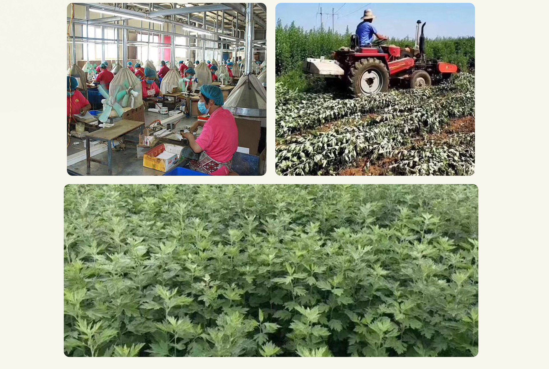 河南艾貝康艾制品有限公司 ,是一家以艾草深加工為核心,涉及健康養生、連鎖加盟,技術培訓等領域的綜合性公司。 南陽是艾草之都,公司就坐落在河南省南陽市,廠房占地面積3000多平方,公司做為南陽市扶貧示范企業由政府重點扶持。南陽為歷史古都,所謂物華天寶,人杰地靈,南陽天然中草藥資源豐富,地道中藥材達上千種,而自古也是中國五位圣賢的誕生地,醫圣:張仲景。謀圣:姜子牙,科圣:張衡,智圣:諸葛亮,商圣:范蠡,富有淳厚的文化底蘊和豐富的歷史積淀,其中最令人驕傲的是醫圣張仲景。艾貝康艾制品有限公司,在集團創始人黃太金的帶領下,公司開拓創新,蒸蒸日上。優質的產品要從生產源頭抓起,我們的研發團隊精選南陽本地區優質野艾草,成立農村艾草種植合作社,簽約農戶達上千余戶。同時也實現了艾草加工生產一體化,現已擁有上萬畝優質艾草種植基地和標準化的艾制品,艾灸產品生產車間。