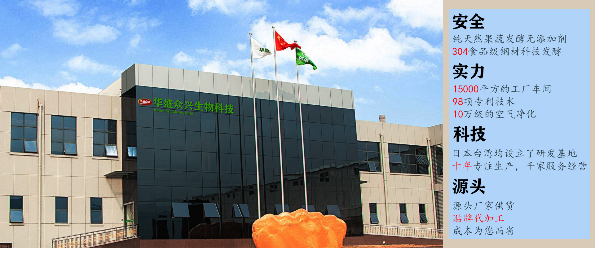 華盛眾興(廈門(mén))生物科技有限公司是酵素果凍、酵素粉、五谷代餐粉、膠原蛋白肽、益生菌等產(chǎn)品專(zhuān)業(yè)生產(chǎn)加工的公司,擁有完整的質(zhì)量管理體系。研發(fā)、生產(chǎn)、設(shè)計(jì)于一體的現(xiàn)代化食品企業(yè)。公司秉承服務(wù)至上,客戶(hù)滿(mǎn)意,”的企業(yè)方針,公司期待著與所有員工一道努力奮斗;公司視員工為寶貴的財(cái)富,希望員工與企業(yè)共同進(jìn)步,與企業(yè)一起分享成果分擔(dān)責(zé)任。 公司的精神“團(tuán)結(jié)合作的精神,不斷進(jìn)取的態(tài)度及平等與關(guān)懷”,我們鼓勵(lì)每一位員工充分發(fā)揮才干并提供機(jī)會(huì),鼓勵(lì)員工積極協(xié)作,增進(jìn)相互了解,加強(qiáng)交流,參與每一項(xiàng)的改進(jìn);公司面臨著日益激烈的市場(chǎng)競(jìng)爭(zhēng),需要我們不斷的改進(jìn)、提高勞動(dòng)生產(chǎn)率、減少損耗、穩(wěn)定地生產(chǎn)產(chǎn)品從而達(dá)到提高產(chǎn)品的競(jìng)爭(zhēng)力,為參與市場(chǎng)競(jìng)爭(zhēng)提供可靠的保障。歡迎指導(dǎo)和業(yè)務(wù)洽談。