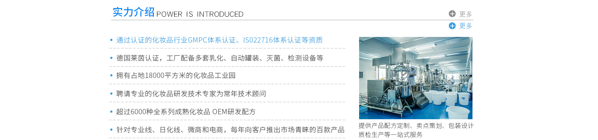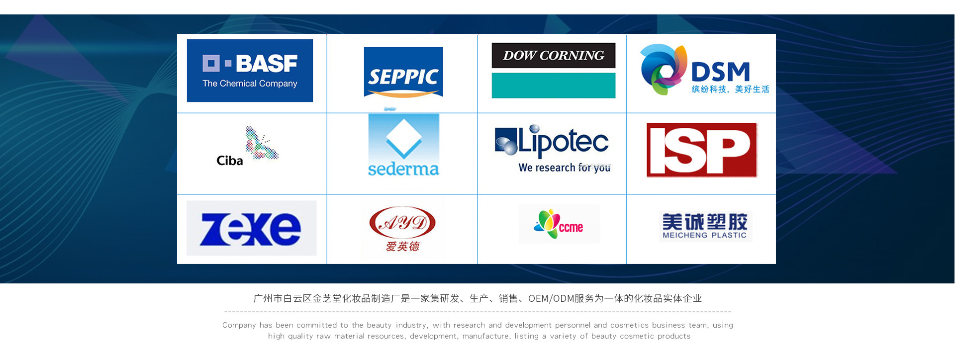 廣州市金芝堂化妝品有限公司是一家集化妝品研發、生產、銷售、服務于一體的大型化妝品工廠,以高品質,天然、安全、有效的產品滿足客戶市場需求。全系列OEM代加工項目:面膜系列,洗面奶系列,膏霜系列、乳液系列、化妝師系列、眼部系列、精華系列、原液系列、凍干粉系列、手足系列、洗護系列、身體系列、護膚系列、精油系列、草本油系列、養生套盒系列等。