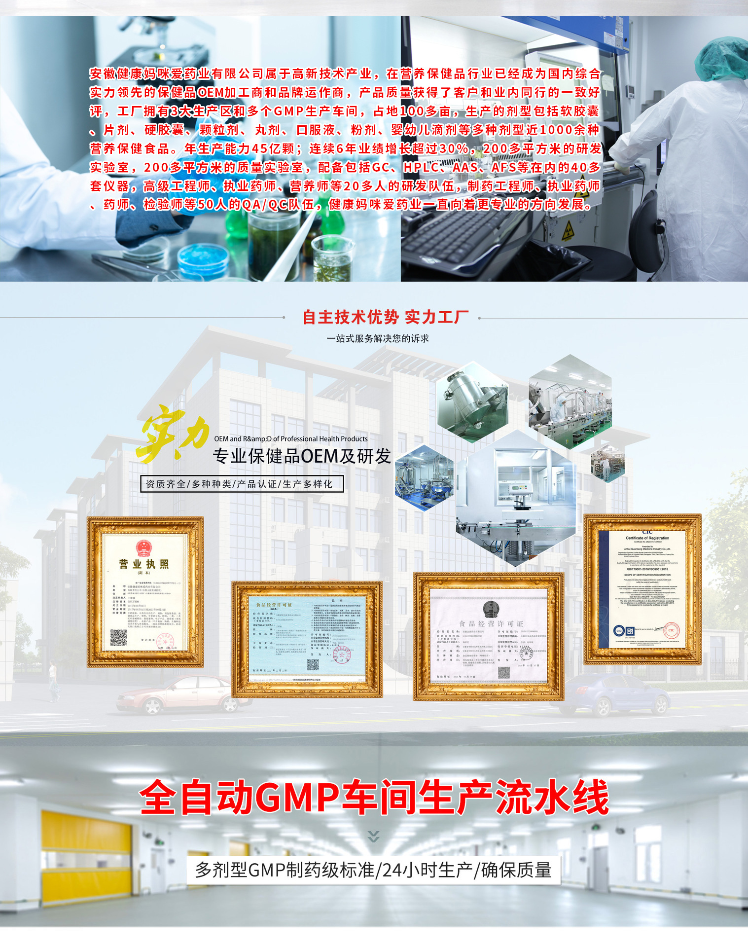 安徽健康媽咪愛藥業(yè)有限公司是嬰幼兒食品、嬰幼兒保健品等產(chǎn)品專業(yè)生產(chǎn)加工的公司,擁有完整、科學的質(zhì)量管理體系。安徽健康媽咪愛藥業(yè)有限公司的誠信、實力和產(chǎn)品質(zhì)量獲得業(yè)界的認可。歡迎各界朋友蒞臨參觀、指導和業(yè)務(wù)洽談。