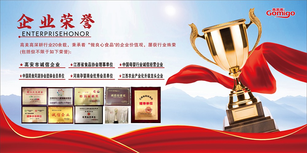 江西高美高健康食品有限公司位于江西省高安市,于2016年正式成立,其前身是“香港冠軍寶貝健康產品實業有限公司”和“江西正鴻實業有限公司”。有著近20年的母嬰行業經驗的江西高美高健康食品有限公司,是一家生產嬰童、中老年、家庭消費食品,及科研、檢測、生產、銷售、OEM、ODM為一體的現代化綜合性企業。公司已經擁有21項實用新型專利,2項發明專利,極富創新的包裝設計、權威機構的配方評價、完善高效的生產管理、便捷高速的物流系統、嚴謹高標的質量體系。公司總投資近億元,占地面積200畝,擁有獨立的研發中心和十萬級凈化標準生產車間,旗下有超級冠、呵噯冠、高美高等多個產品品牌,合作的知名品牌有爺爺的農場、寶寶饞了、貝因美、麥甄選、江中食療、小鹿藍藍、辰頤物語、蔚來等。