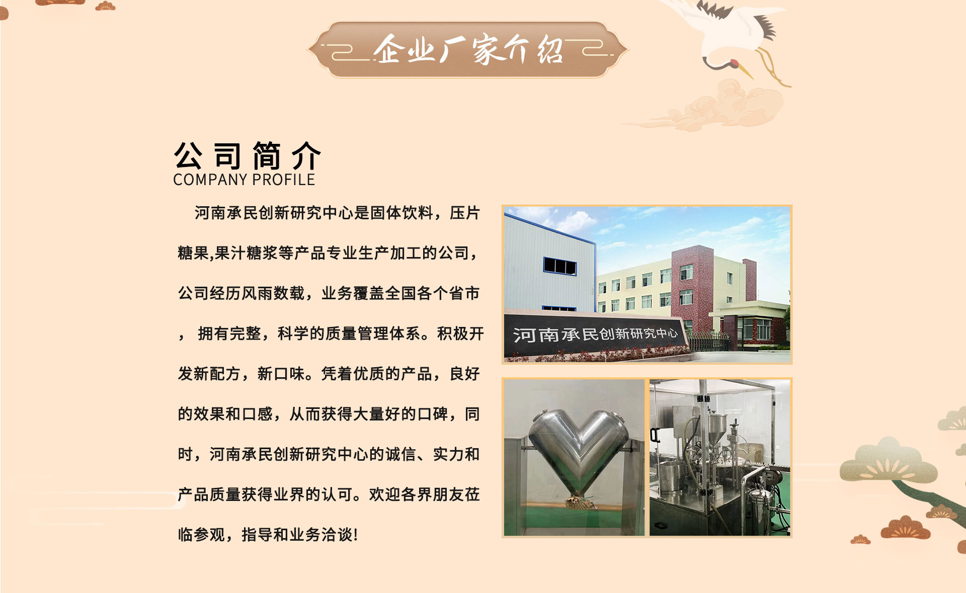 河南承民醫藥有限公司是奶昔、酵素、益生菌、壓片糖果、肽等產品專業生產加工的公司,擁有完整、科學的質量管理體系。河南承民醫藥有限公司的誠信、實力和產品質量獲得業界的認可。歡迎各界朋友蒞臨參觀、指導和業務洽談。