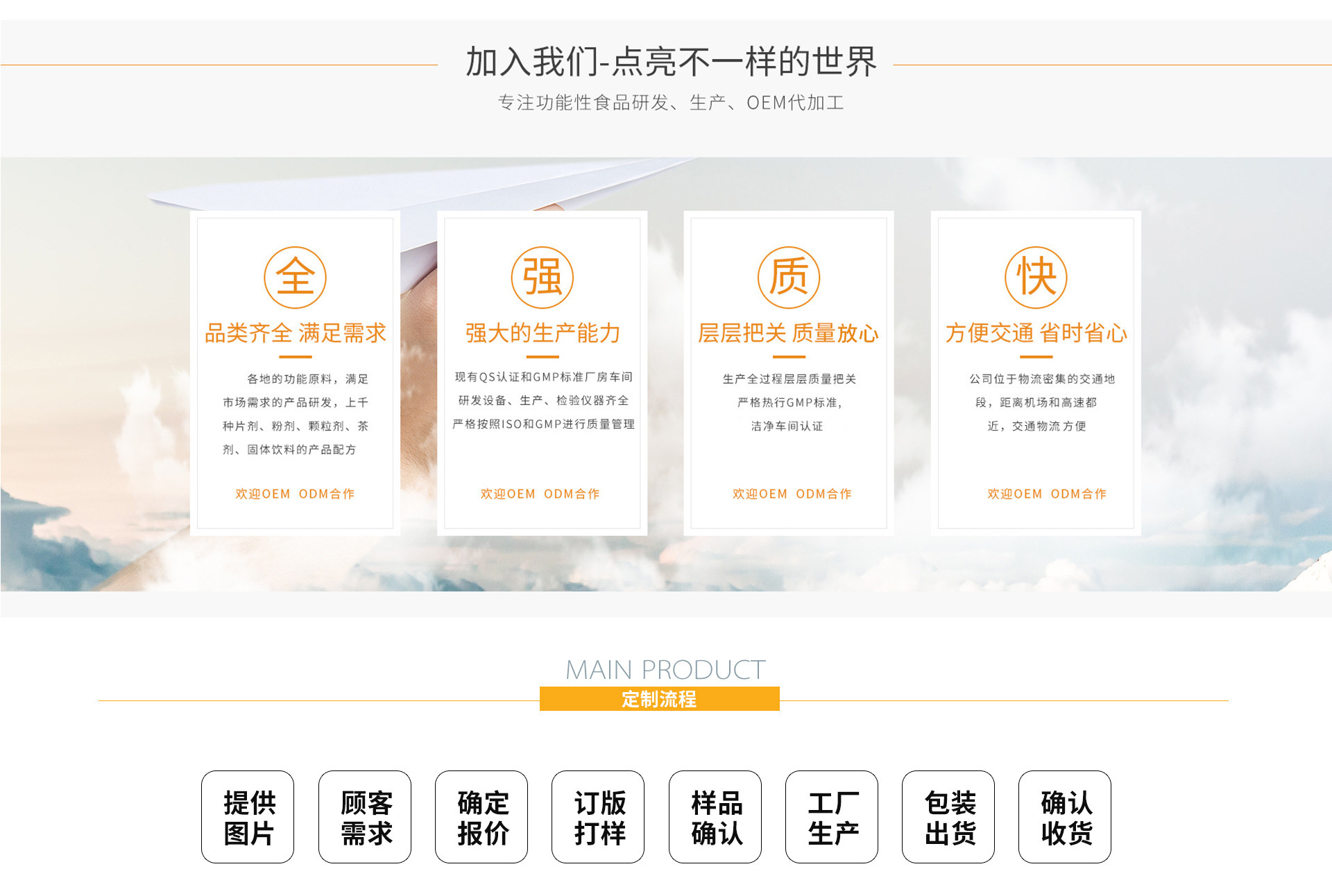 代工品類:腸道健康 免疫營養 運動營養 男性/女性/青少年/中老年健康管理
