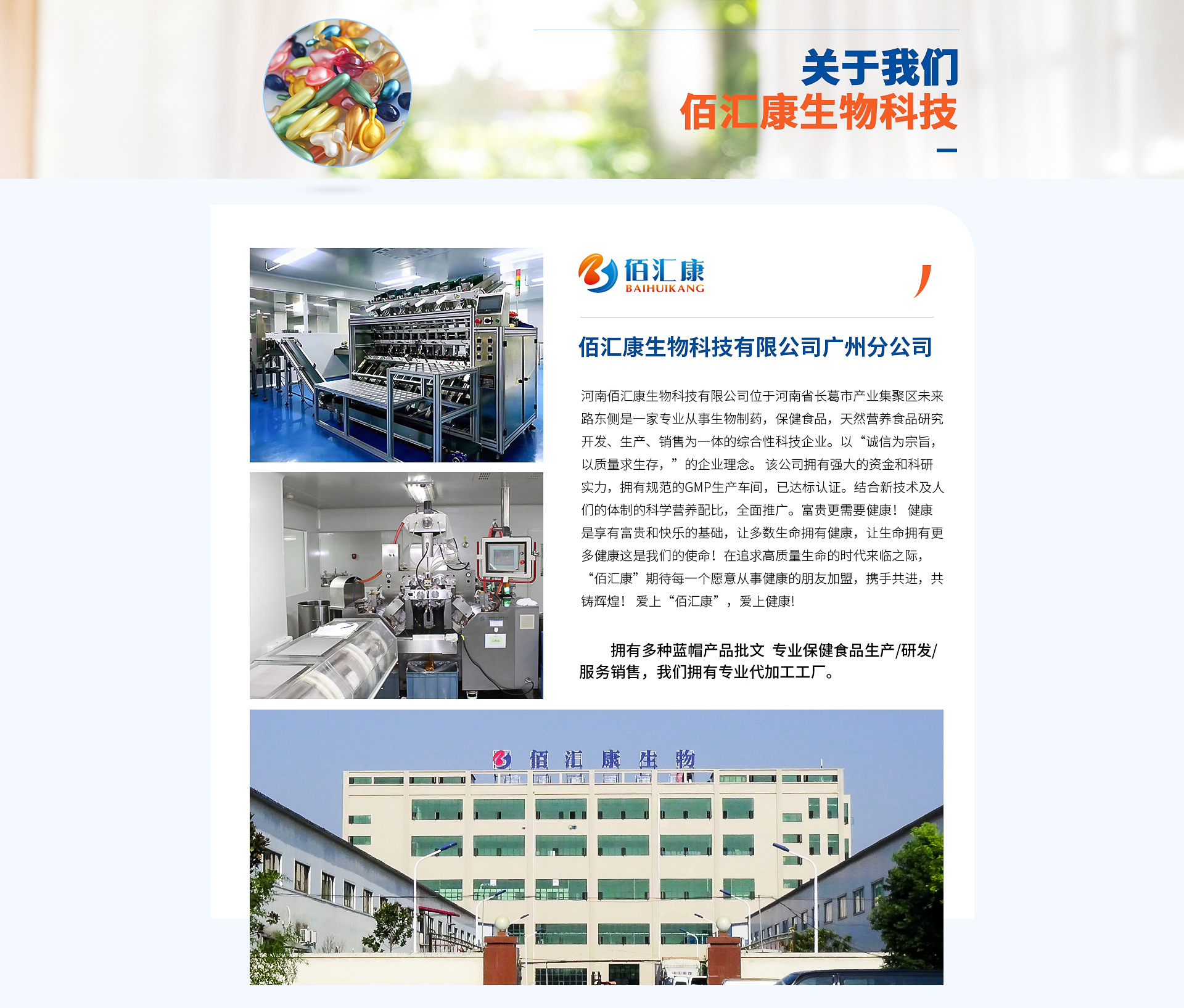 河南佰匯康生物科技有限公司廣州分公司是保健項目合作等產品專業生產加工的公司,擁有完整、科學的質量管理體系。河南佰匯康生物科技有限公司廣州分公司的誠信、實力和產品質量獲得業界的認可。歡迎各界朋友蒞臨參觀、指導和業務洽談。