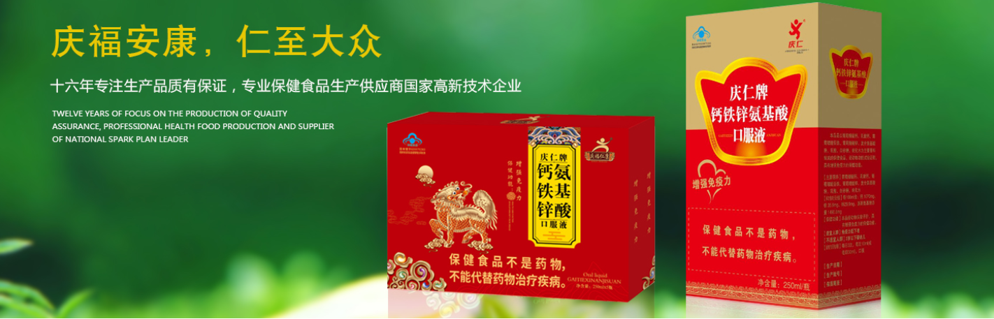 江西樟樹市慶仁保健品有限公司成立于2004年1月18號(hào),注冊(cè)資金2600萬元,是一家專業(yè)致力于保健食品和營(yíng)養(yǎng)食品研發(fā)、生產(chǎn)、銷售為一體的高新技術(shù)企業(yè)。公司現(xiàn)有保健品批文:慶仁牌鈣鐵鋅氨基酸口服液、慶仁牌硒口服液、慶仁牌鈣口服液、慶仁牌鹿茸人參酒、慶仁牌鈣維生素D咀嚼片、慶仁牌牦牛骨茯苓山藥核桃維D顆粒、阿膠枸杞桑椹大棗加鐵顆粒等自有批文十幾個(gè),正在申報(bào)的保健品批文十六個(gè),同時(shí)擁有普通食品生產(chǎn)線、固體飲料其他飲料、配制酒、壓片糖、消殺剎生產(chǎn)線。我們的專業(yè)品質(zhì)保證和誠(chéng)信態(tài)度將為經(jīng)銷商朋友提供廣闊合作共贏空間。