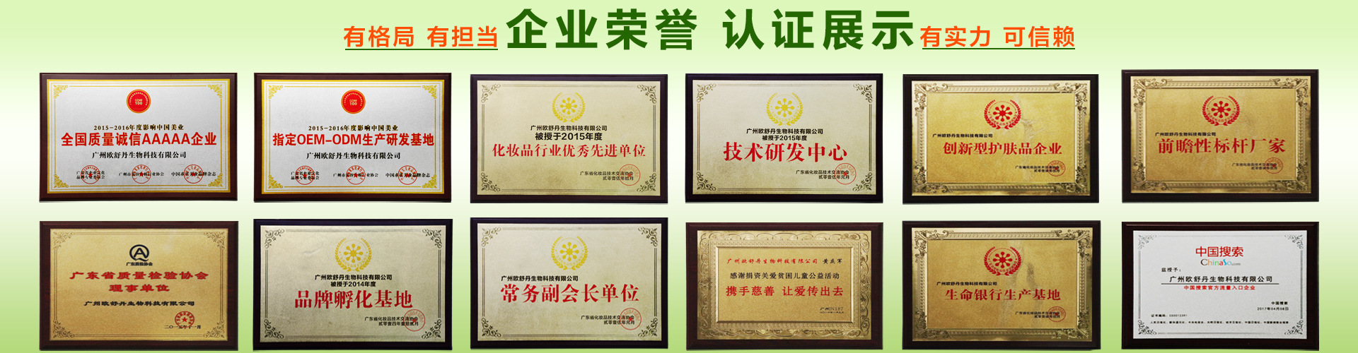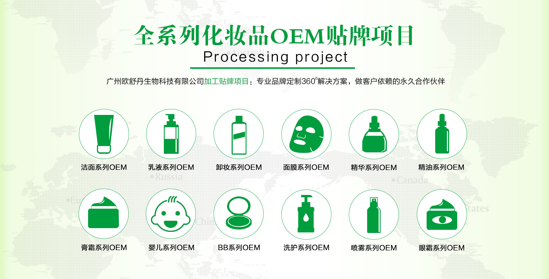 廣州歐舒丹生物科技有限公司是一家技術裝備先進,管理規范到位,環境保護嚴格,生產設備的自動化的加工基地。公司擁有10萬級的空氣凈化車間提供了高清潔的生產環境。配有先進的生產設備和檢測儀器,擁有一批具有多年實踐經驗從事化學工程研究的高級技術人才,開發出上千種高質量的成熟配方,能全面滿足市場的各種需求。 2加工廠優勢:廣州歐舒丹生物科技有限公司是一家集原料研制、配方開發、加工生產、產品策劃及售后服務為一體的專業化妝品OEM/ODM化妝品公司。廣州歐舒丹生物科技有限公司衷心希望與美容化妝品同行們攜手共進,開拓創新。廣州歐舒丹生物科技有限公司本著“客戶第一,誠信至上”的原則,與多個品牌建立了長期的合作關系。熱誠歡迎各界朋友前來參觀、考察、洽談業務。 廣州歐舒丹生物科技有限公司服務項目的優勢:我們擁有專業的研發團隊,國內一流的化妝品生產車間,豐富的OEM代加工經驗,先進的生產檢測設備。