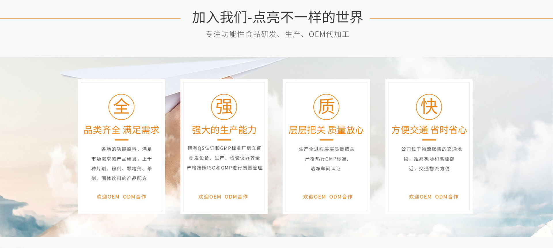 代工品類:丸劑 片劑 粉劑 口服液飲品 軟糖 硬膠囊 軟膠囊 膏滋 調制乳粉 特殊膳食 普通食品 膏貼 乳膏 噴劑 凝膠 水劑 霜膏